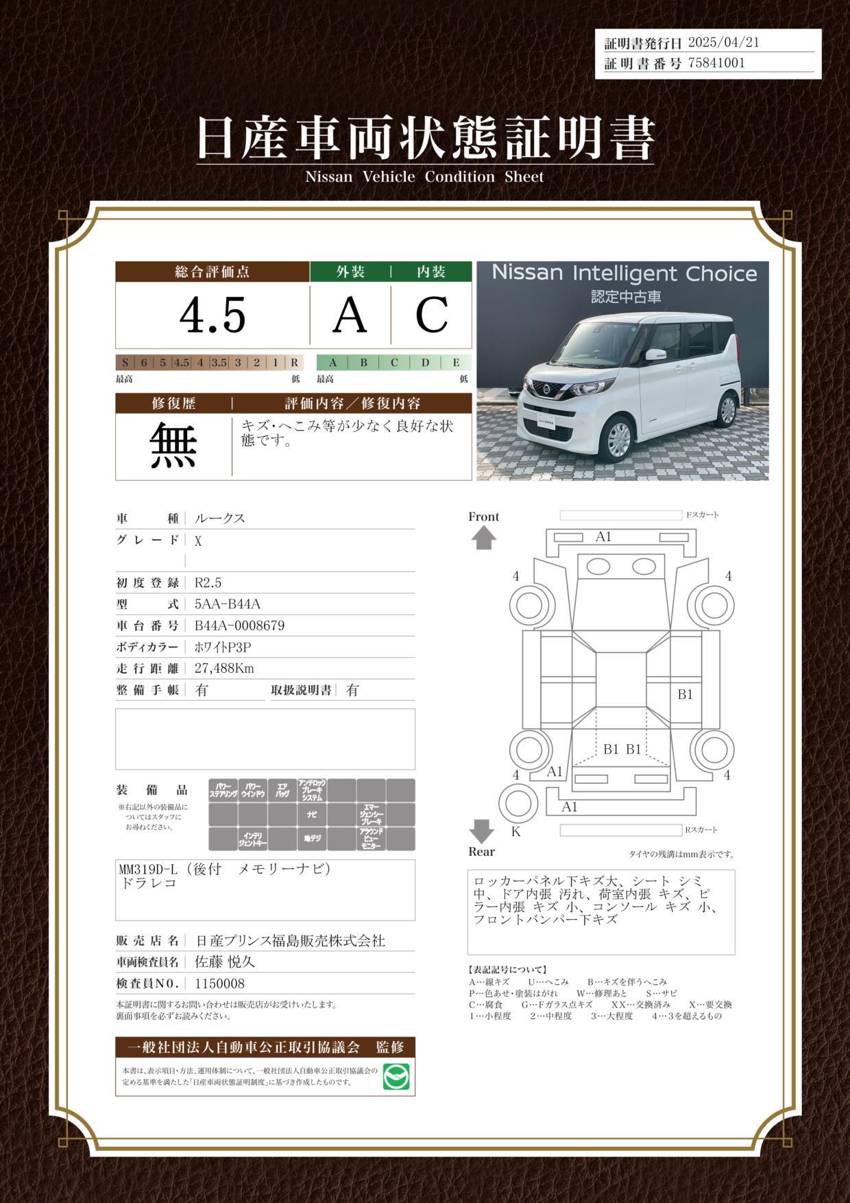 車両状態評価書 | ※クリックすると開きます![]() |