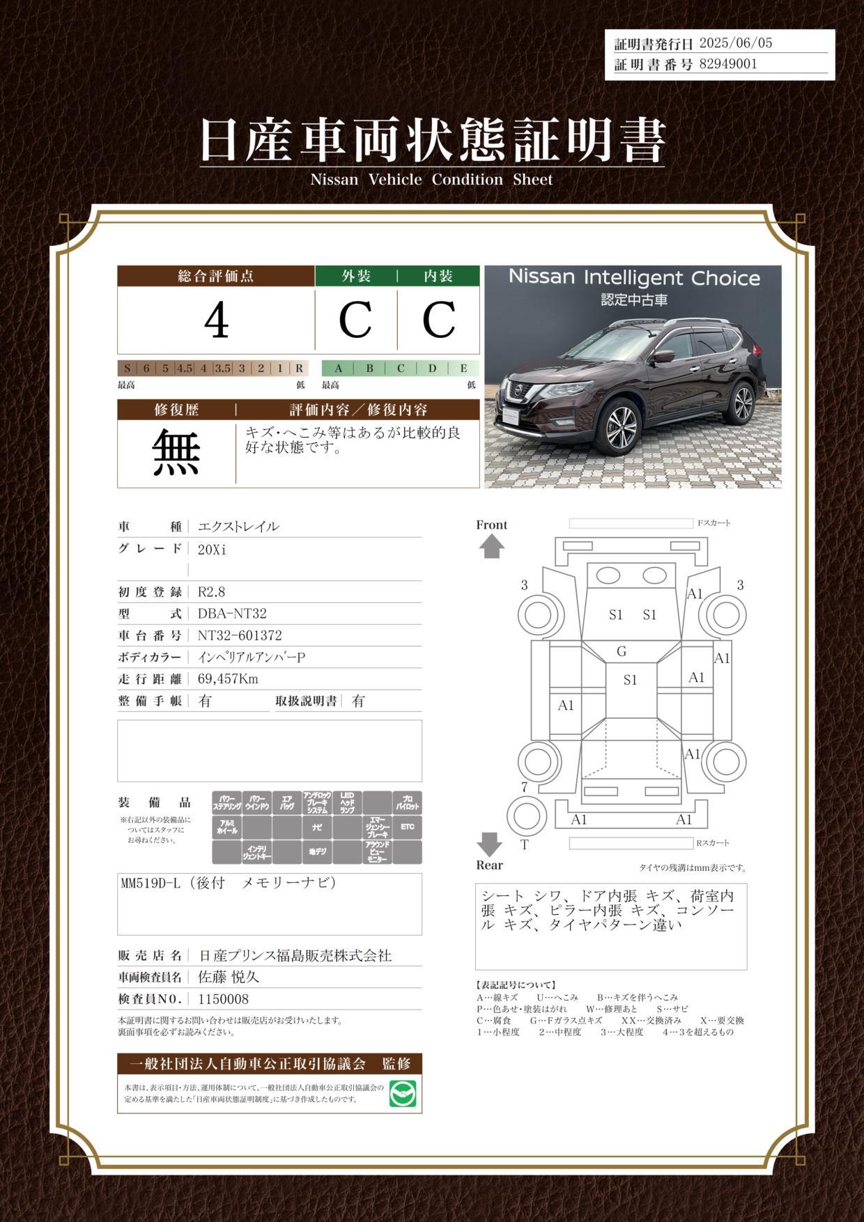 車両保証(エクストレイル 20Xi:日産プリンス福島販売(株)オートピア本内)