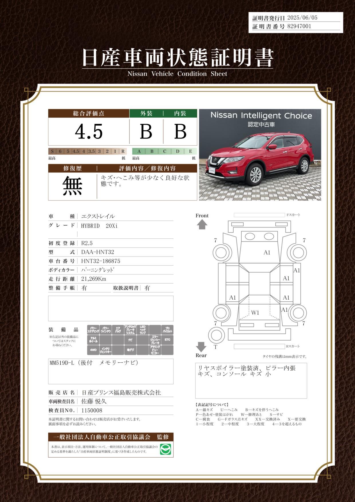 車両保証(エクストレイル 20Xi ハイブリッド:日産プリンス福島販売(株)オートピア本内)