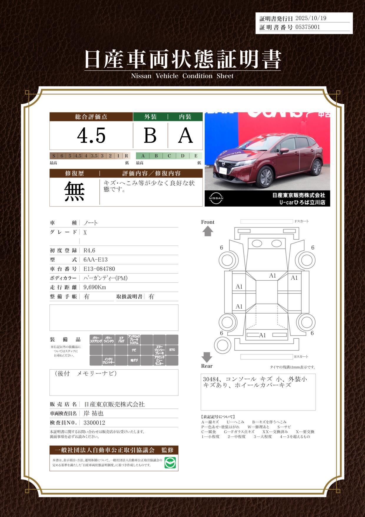 車両保証(ノート X:日産東京販売(株) U-Carひろば立川店)