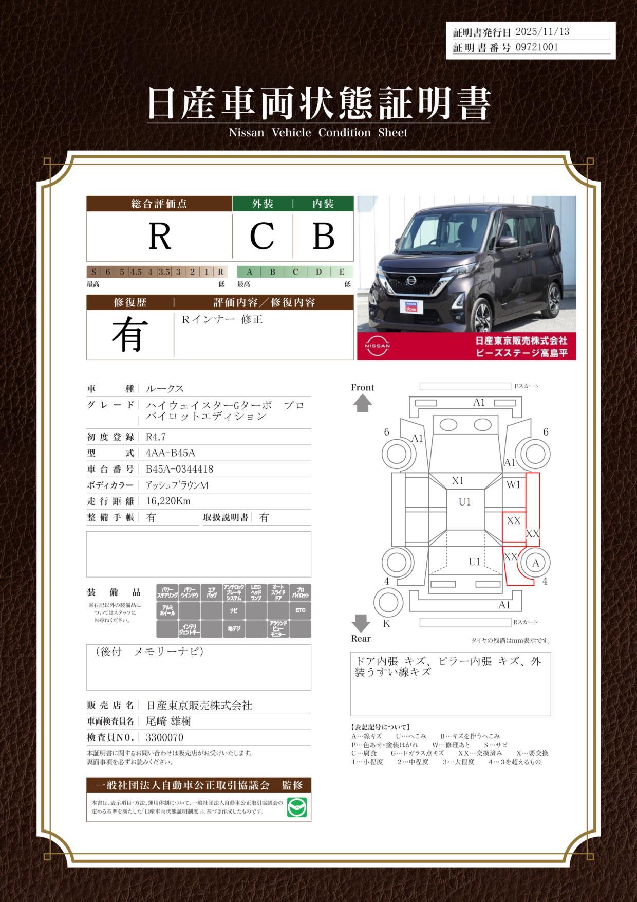 車両保証(ルークス ハイウェイスター Gターボプロパイロットエディション:日産東京販売(株) P’sステージ高島平)
