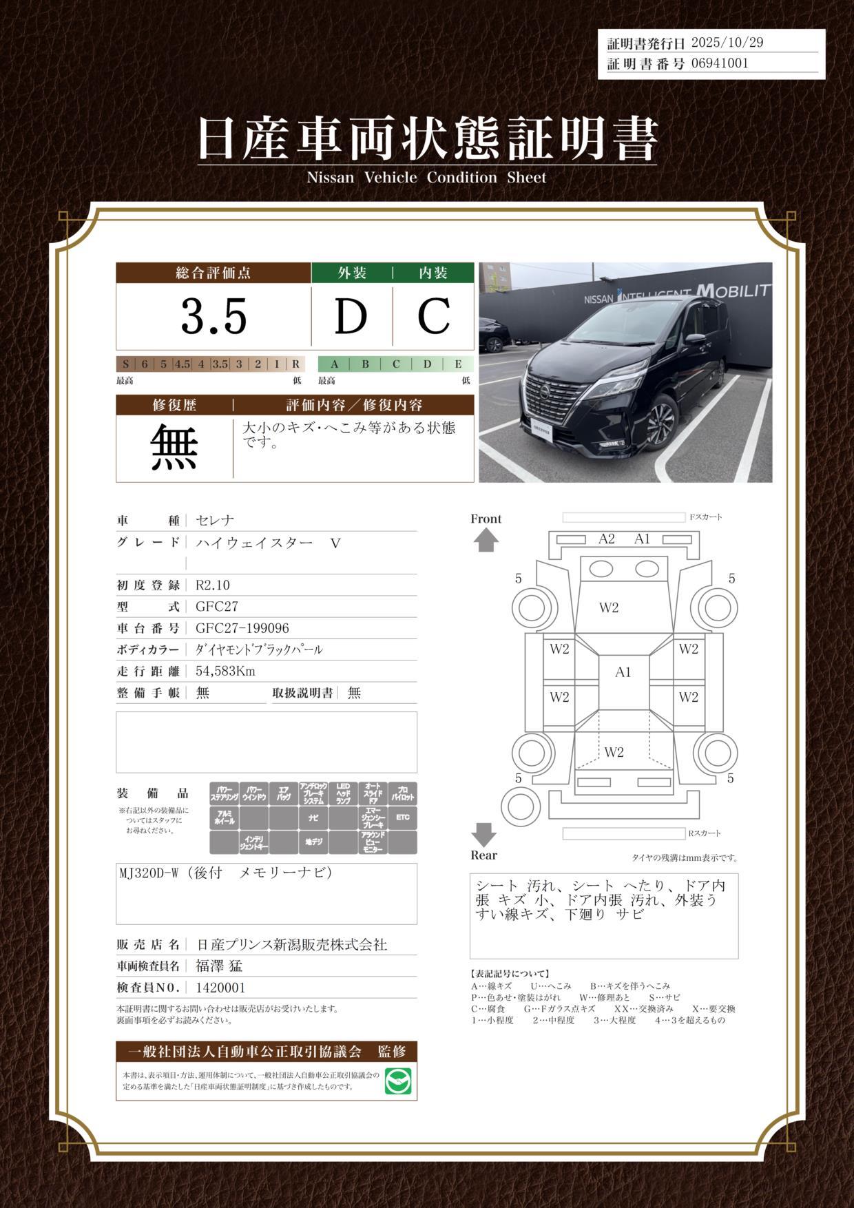 車両保証(セレナ ハイウェイスターV:日産プリンス新潟販売(株) マイカー昭和大橋店)