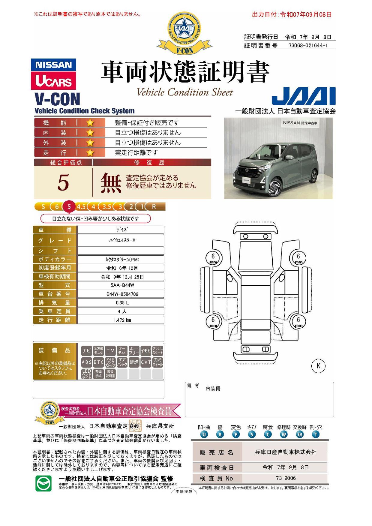 車両保証(デイズ ハイウェイスター X:兵庫日産自動車株式会社 カーパレス神戸北)