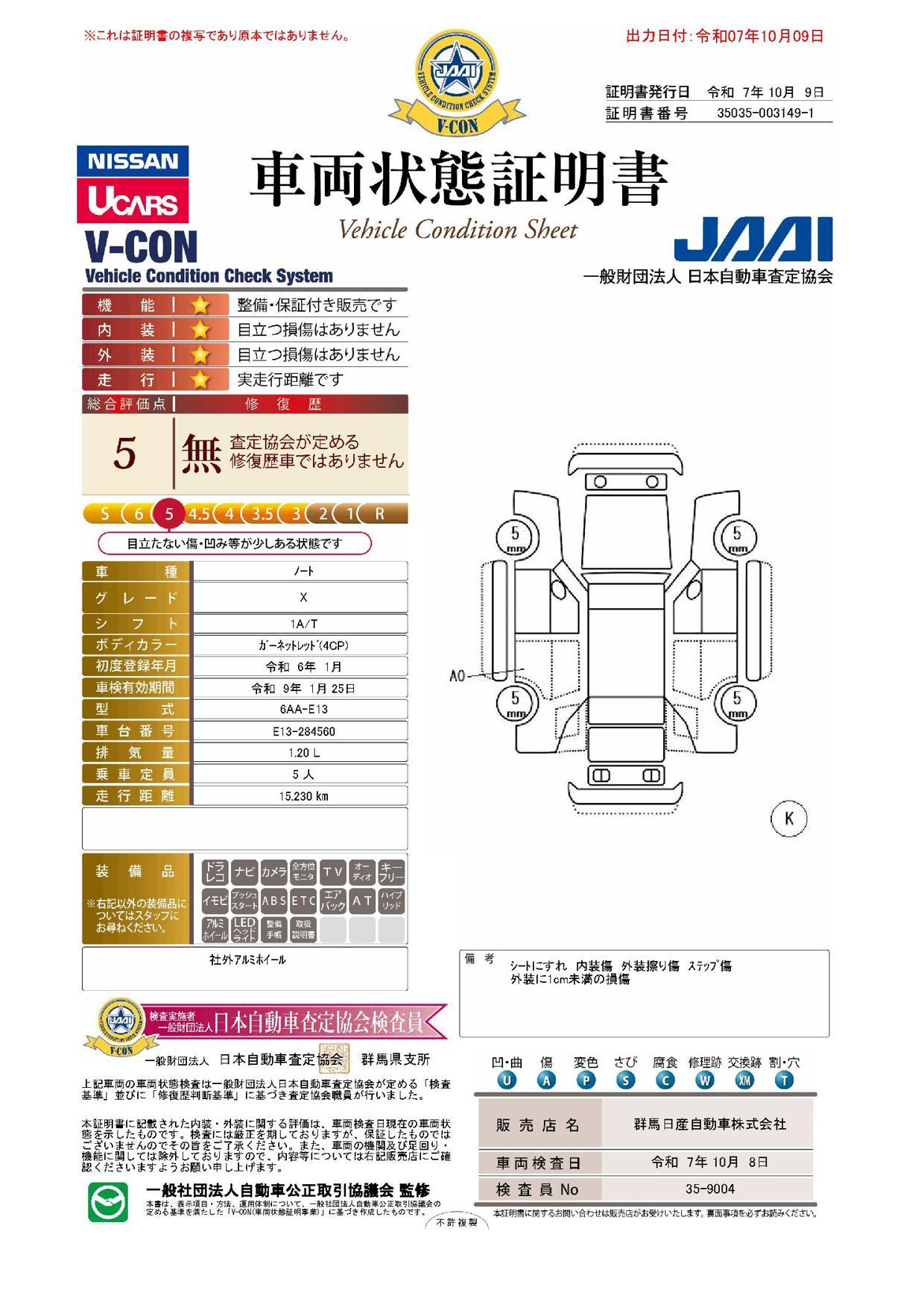 | 車両状態評価書 | ※クリックすると開きます![]() |
