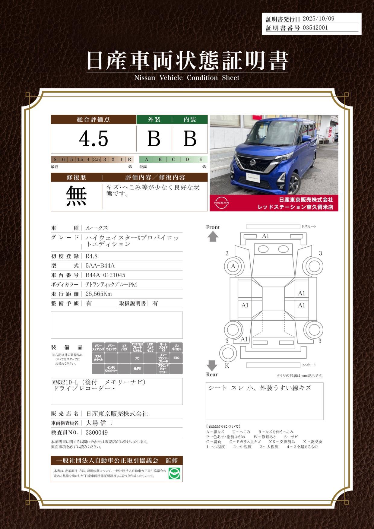 車両保証(ルークス ハイウェイスター X プロパイロットエディション:日産東京販売(株) レッドステーション東久留米店)
