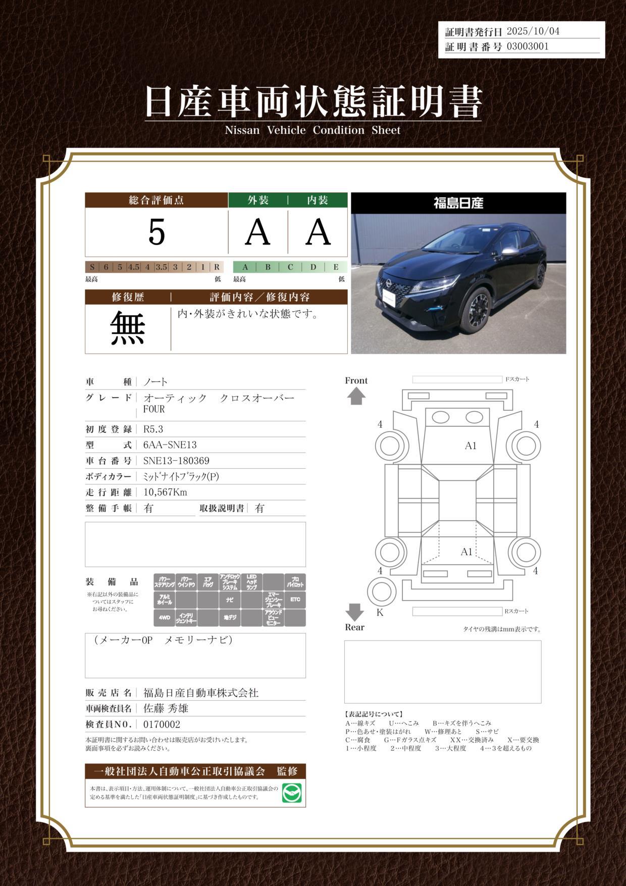 車両保証(ノート オーテック クロスオーバー FOUR:福島日産自動車(株) ユーカーズ福島矢野目)