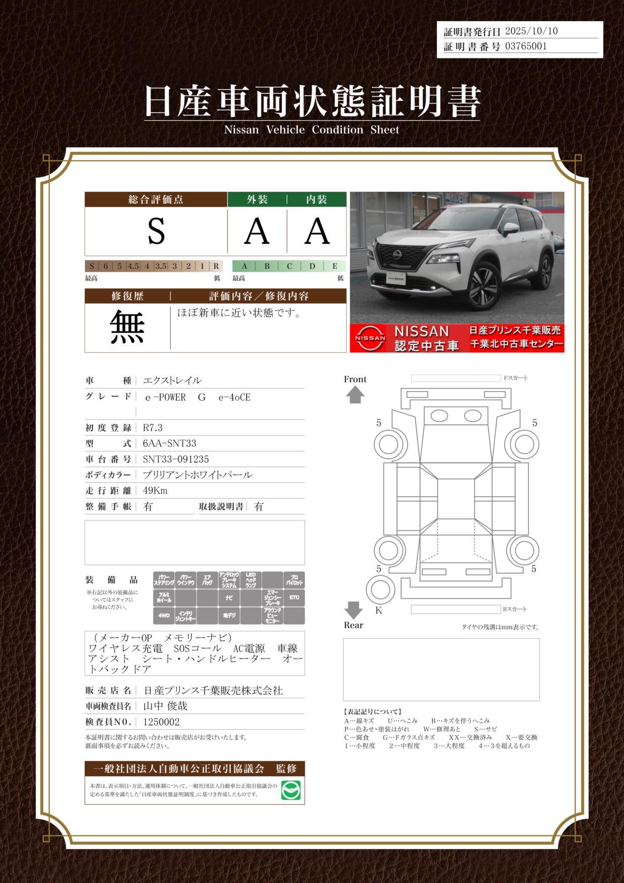 車両保証(エクストレイル G e-4ORCE:日産プリンス千葉販売株式会社 千葉北中古車センター)