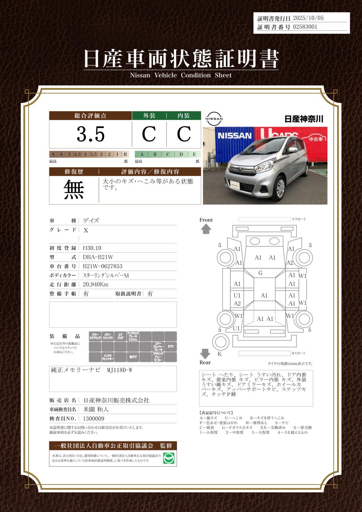 車両保証(デイズ X:日産神奈川販売株式会社 Carスクエア横須賀)