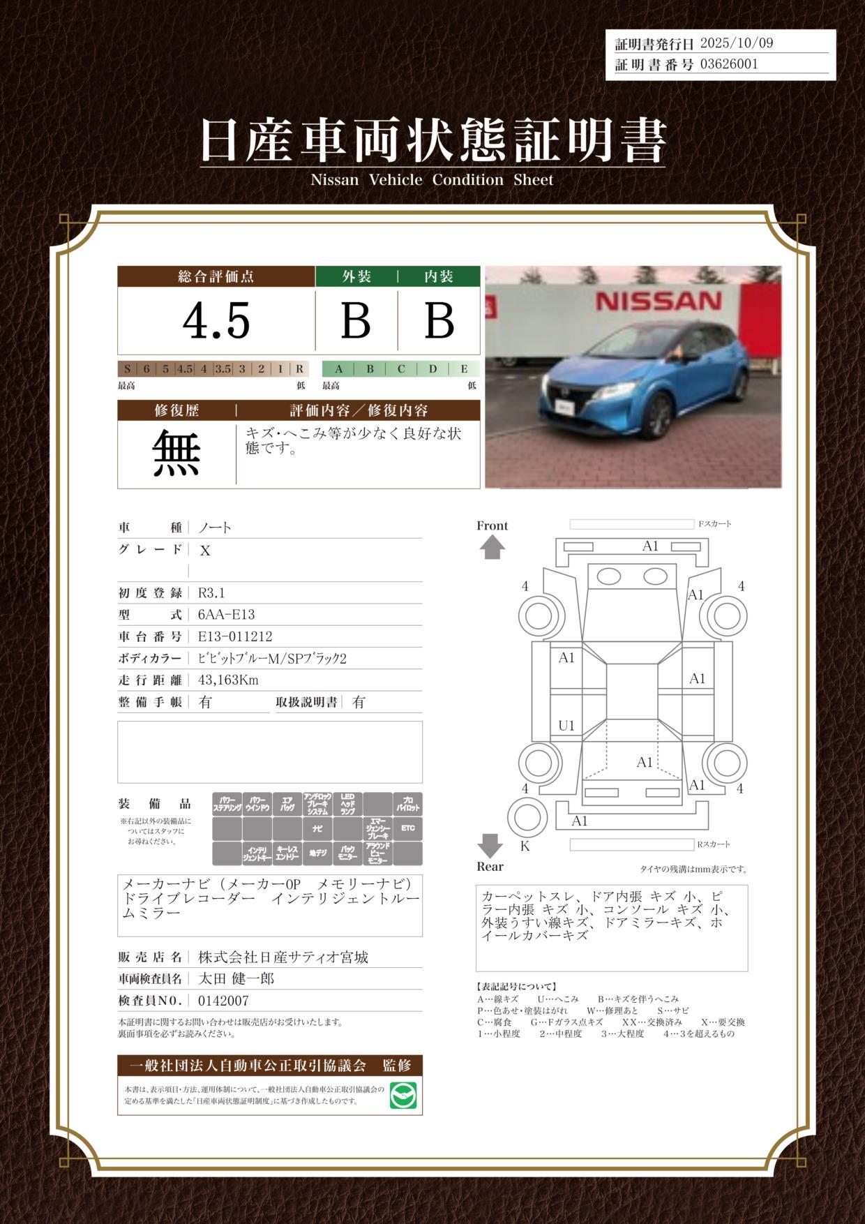 車両保証(ノート X:(株)日産サティオ宮城 Uカー名取店)
