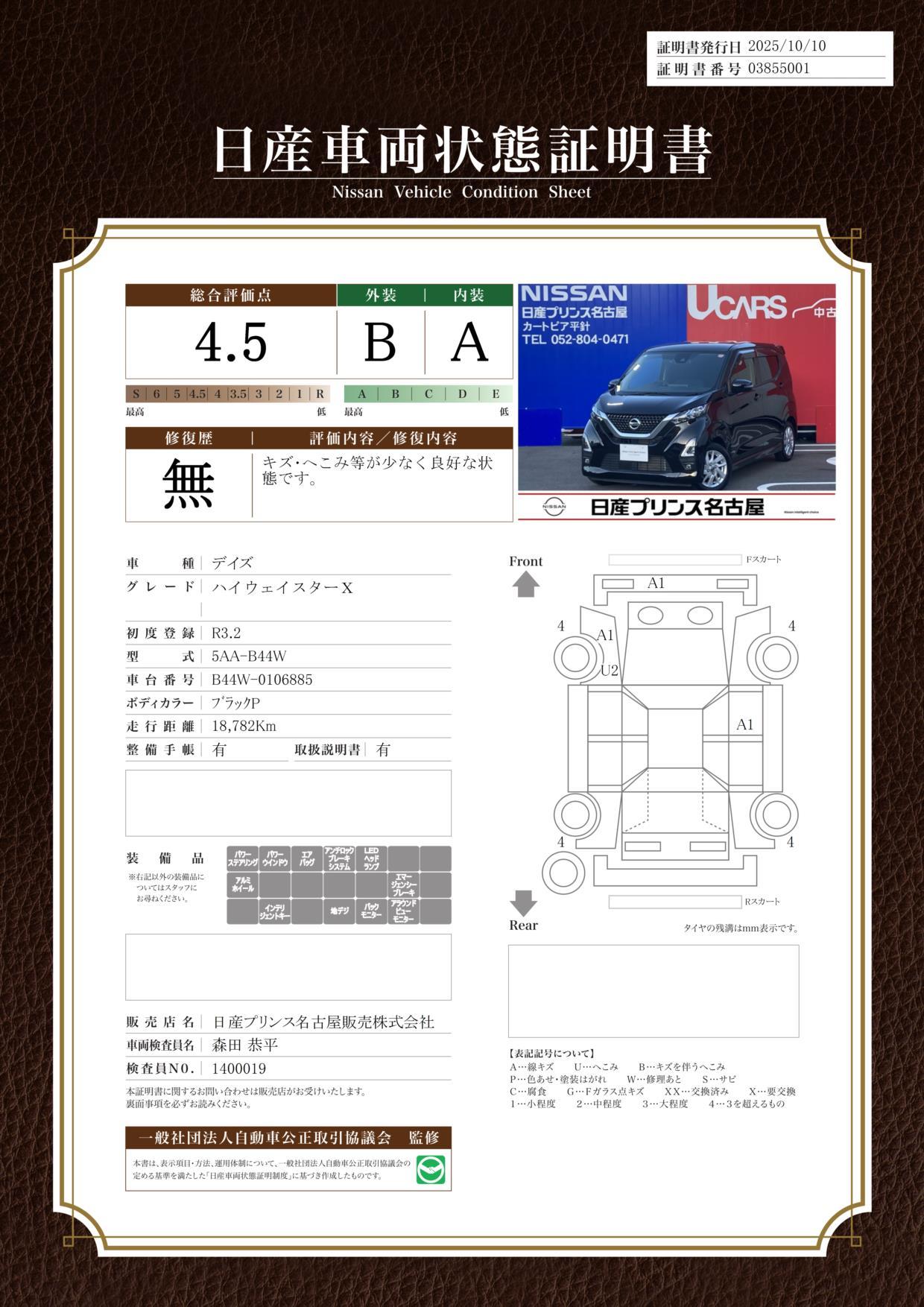 車両保証(デイズ ハイウェイスター X:日産プリンス名古屋販売(株) カートピア平針)