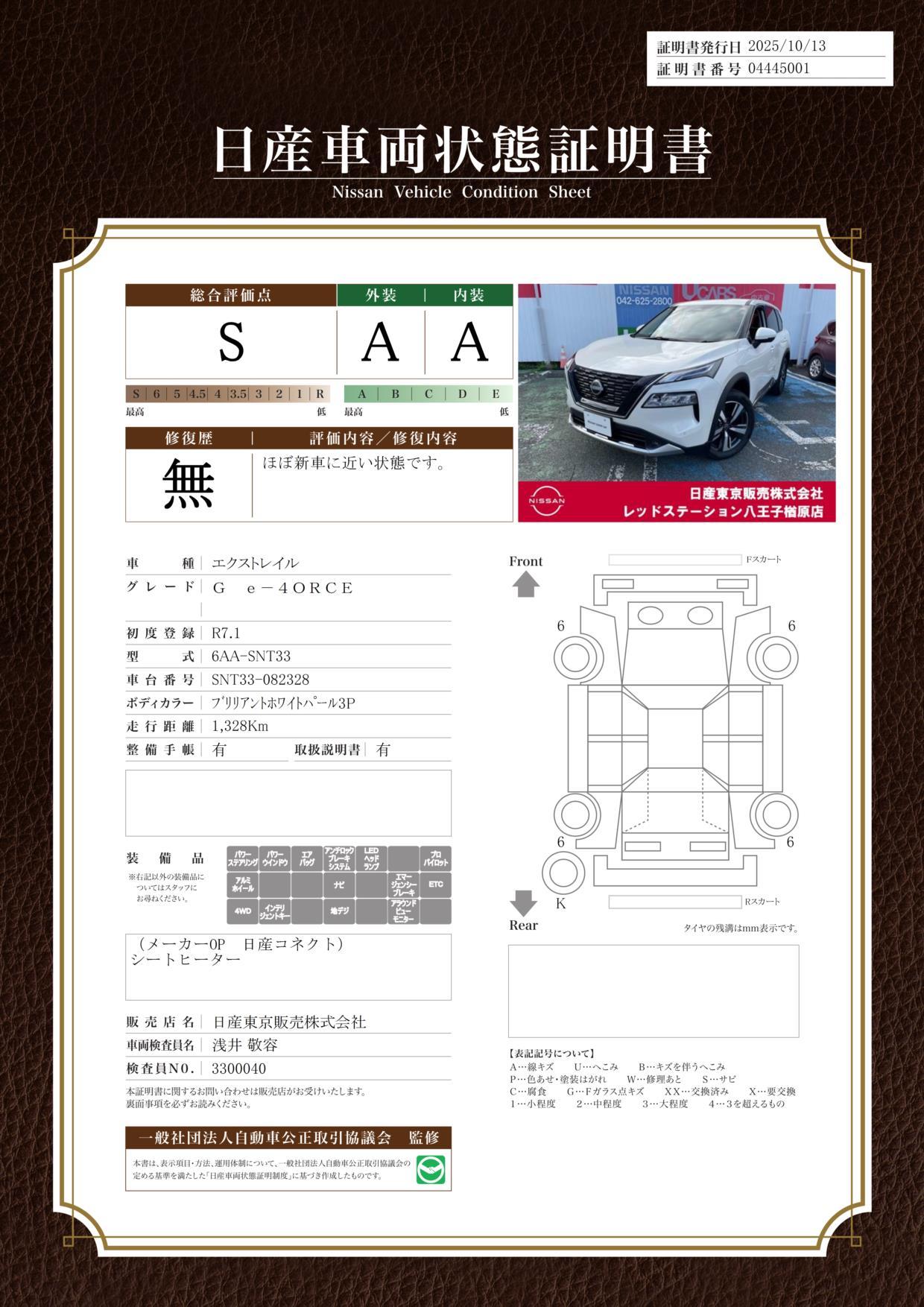 車両保証(エクストレイル G e-4ORCE:日産東京販売(株) レッドステーション八王子楢原店)