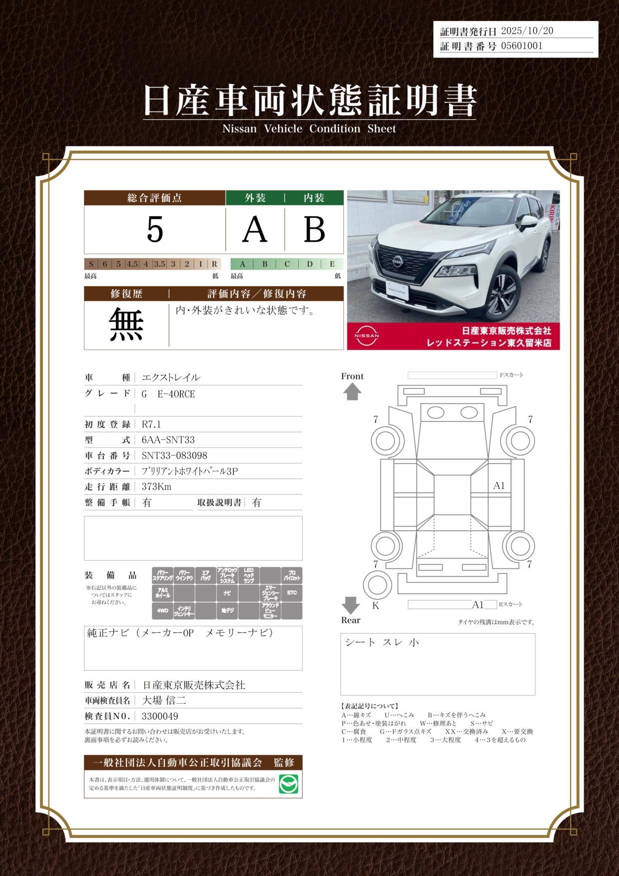 車両保証(エクストレイル G e-4ORCE:日産東京販売(株) レッドステーション東久留米店)