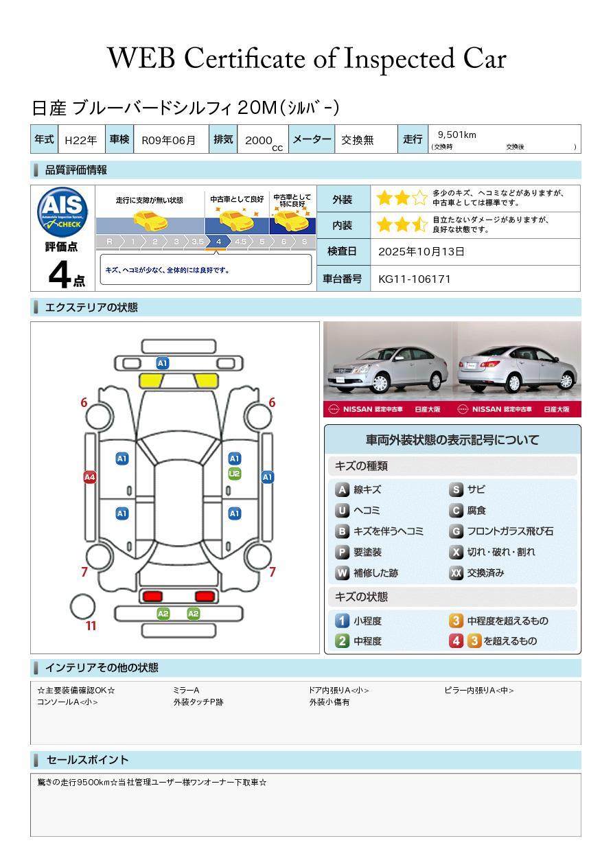 車両保証(ブルーバードシルフィ 20M:日産大阪販売株式会社 UCARS守口)