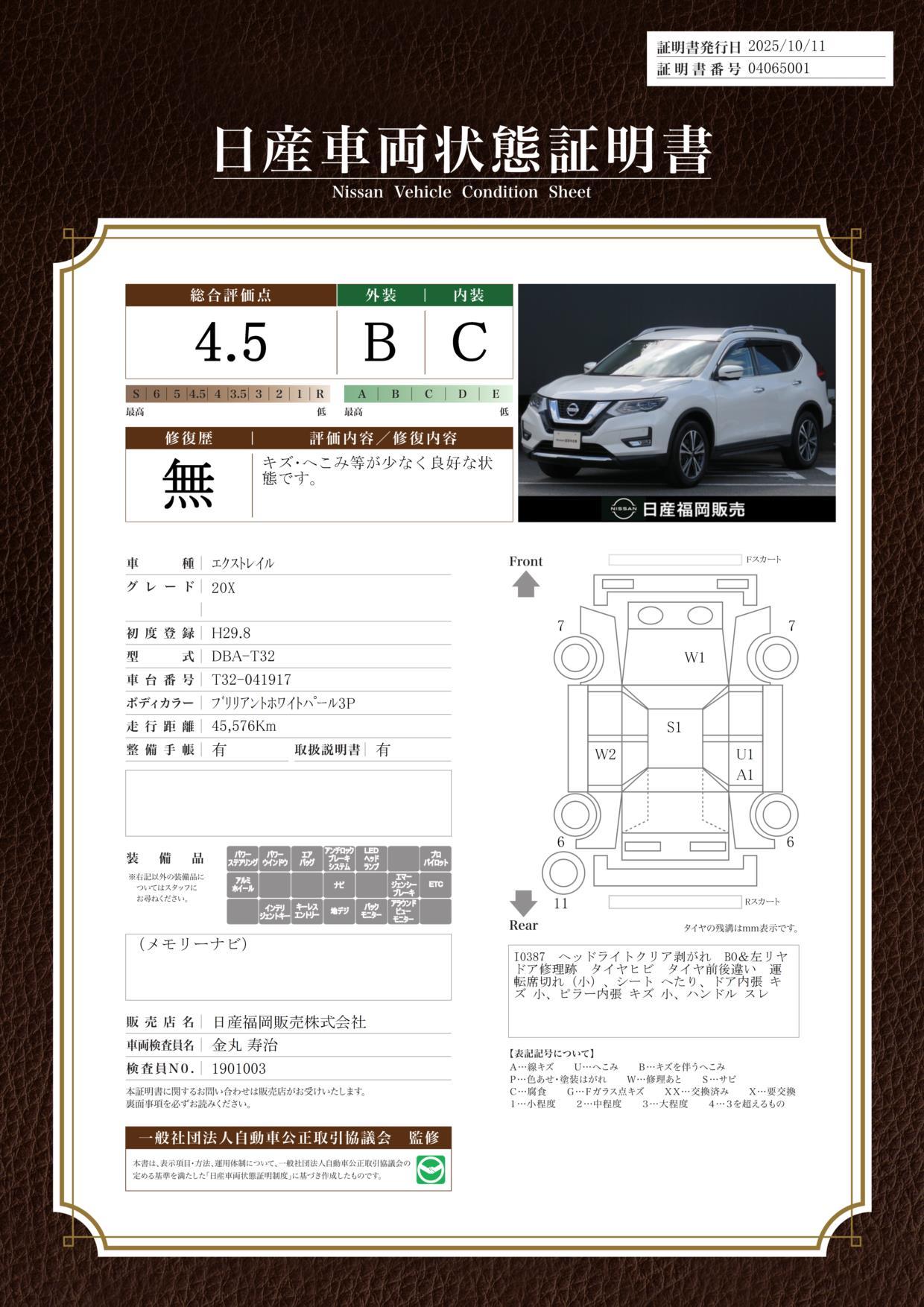 車両保証(エクストレイル 20X:日産福岡販売(株)カーパレス久留米)