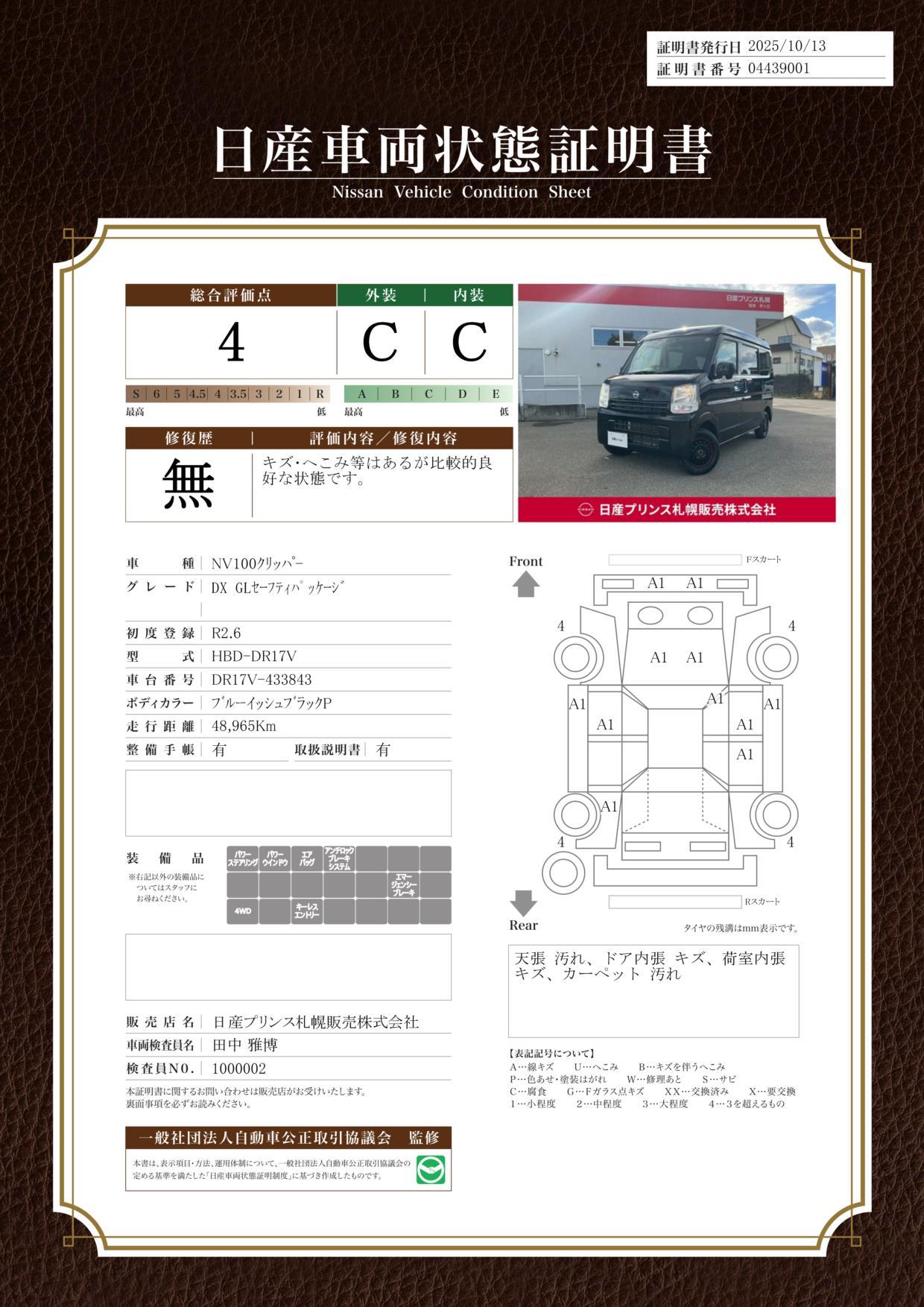 車両状態評価書 | ※クリックすると開きます![]() |