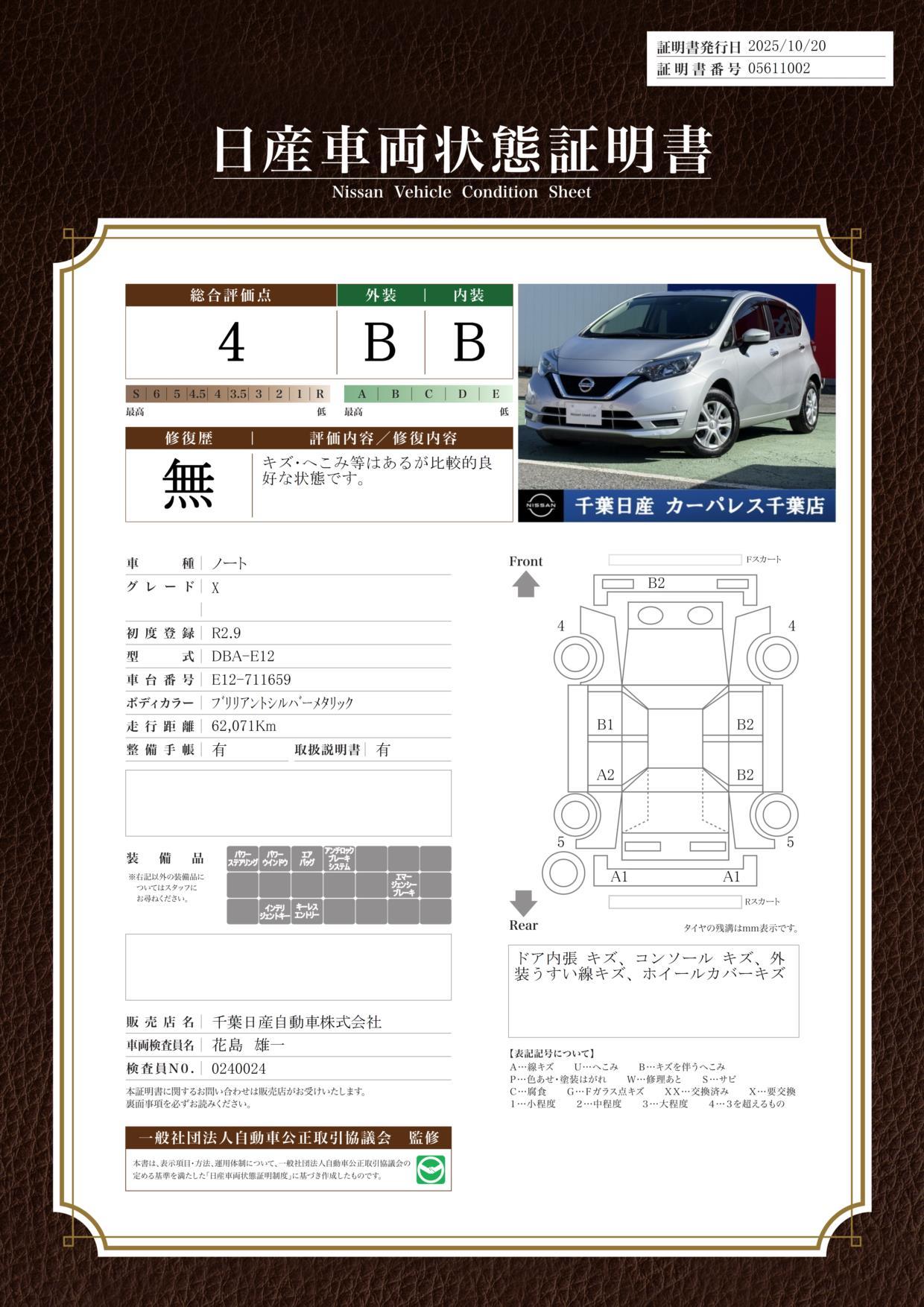 車両保証(ノート X:千葉日産自動車株式会社 カーパレス千葉店)