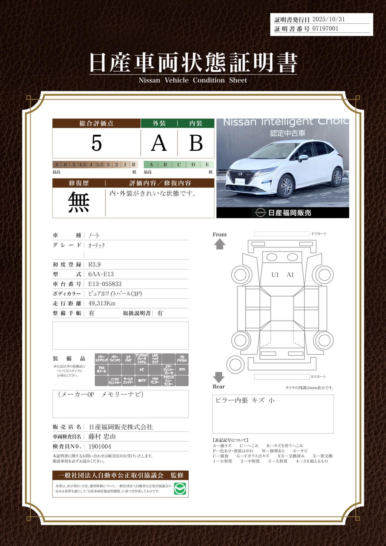 車両保証(ノート オーテック:日産福岡販売(株)カーパレス筑紫)