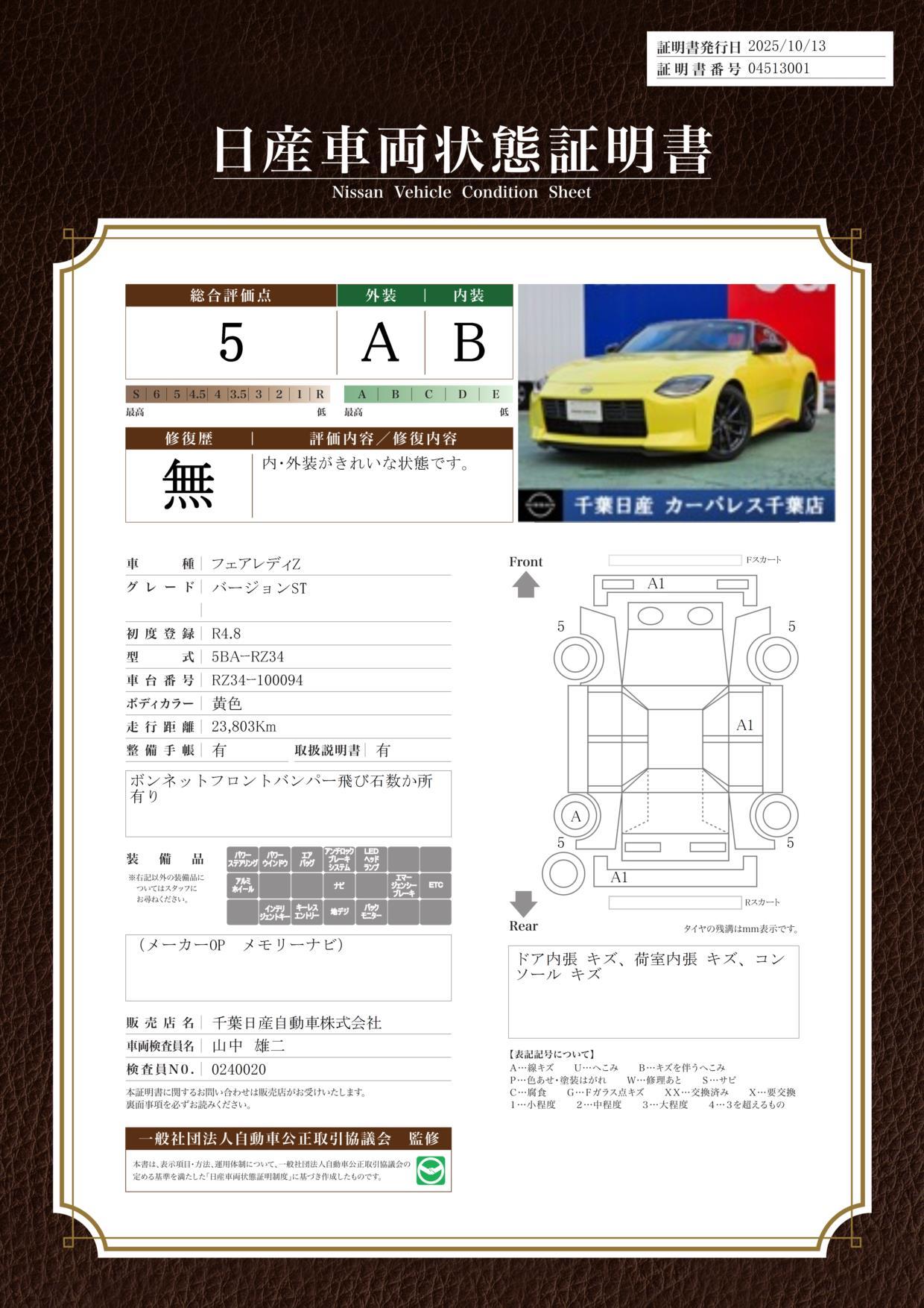 車両保証(フェアレディZ バージョンST:千葉日産自動車株式会社 カーパレス千葉店)