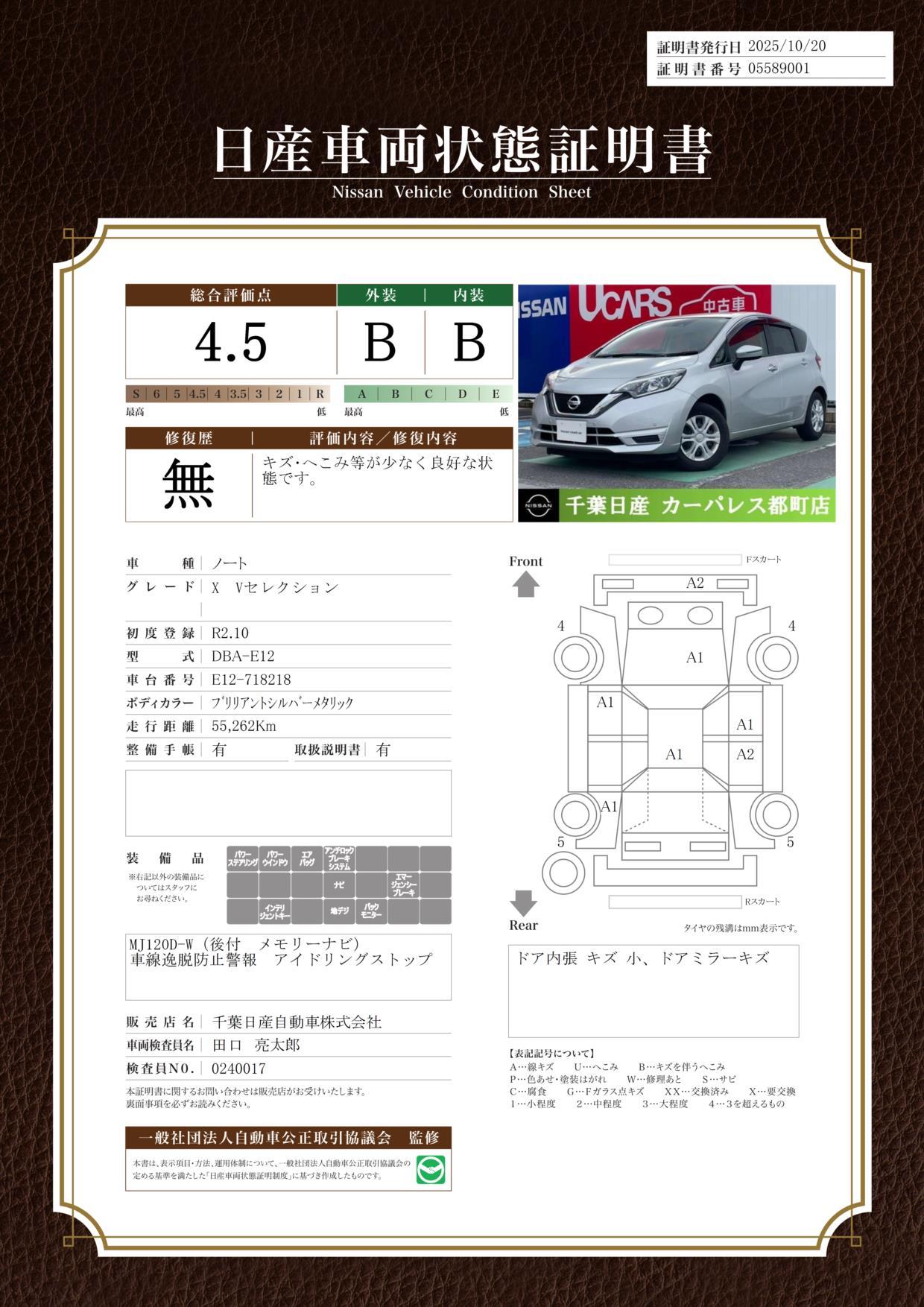 | 車両状態評価書 | ※クリックすると開きます![]() |