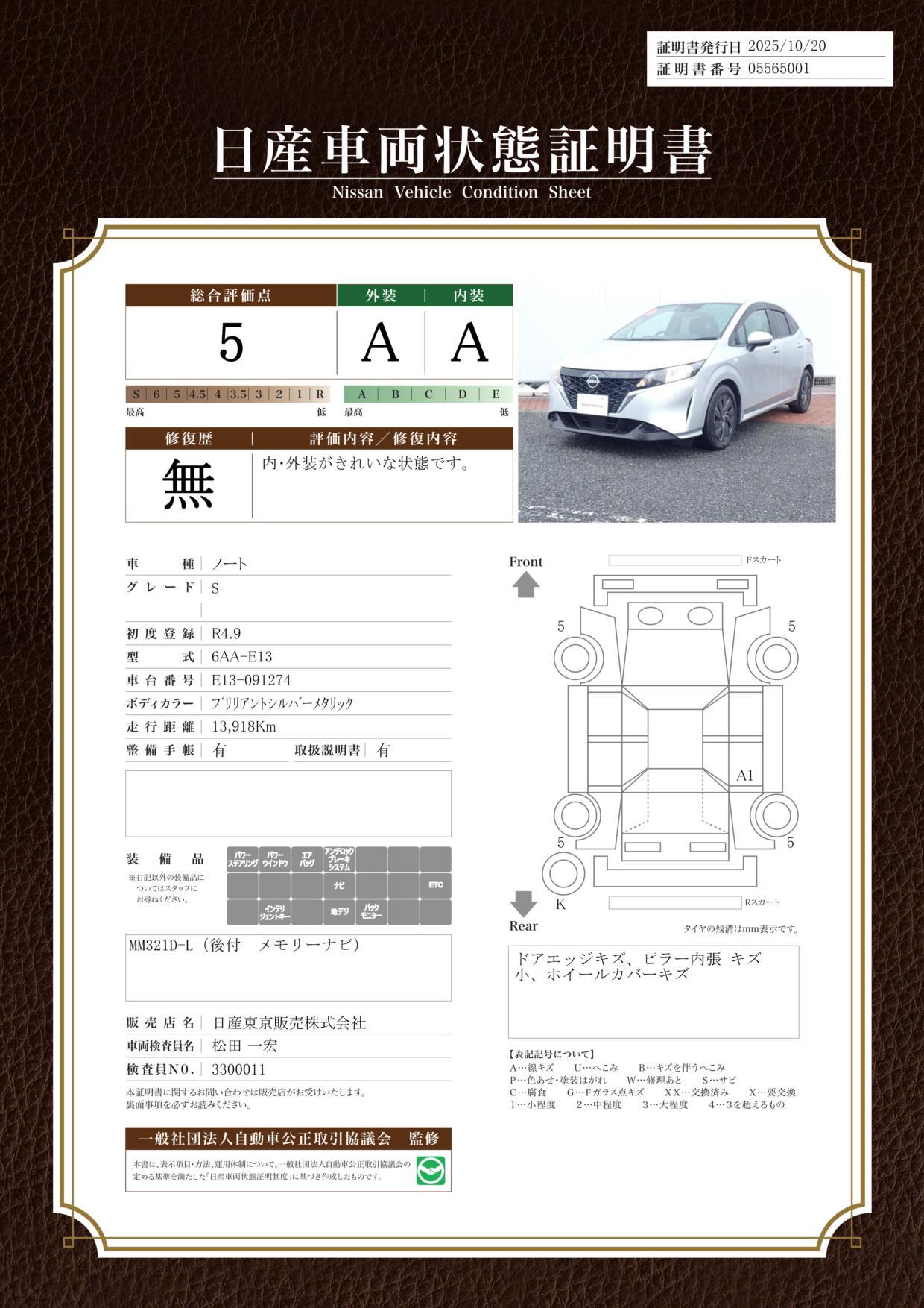 車両保証(ノート S:日産東京販売(株) U-Carひろば三鷹)