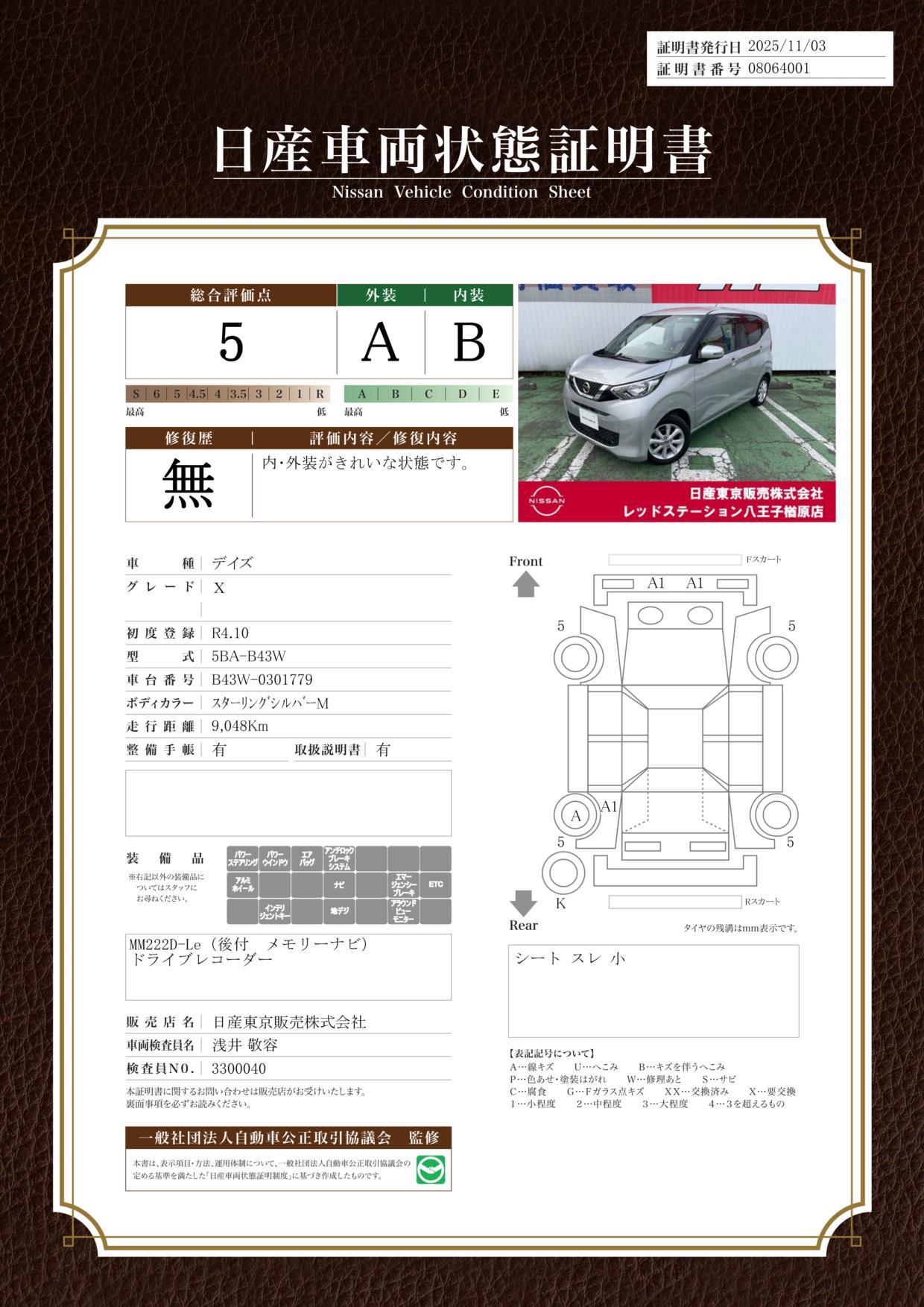 車両保証(デイズ X:日産東京販売(株) レッドステーション八王子楢原店)
