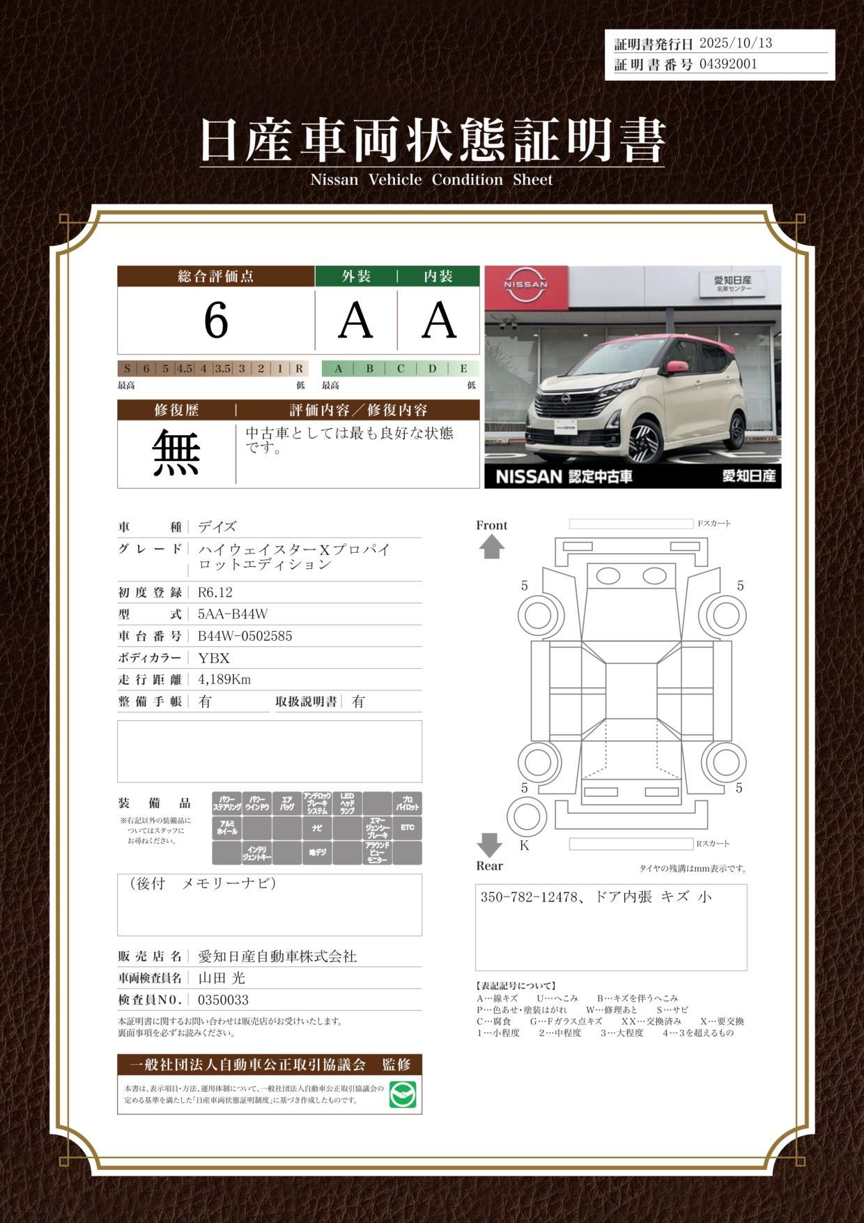 車両保証(デイズ ハイウェイスター X プロパイロットエディション:愛知日産自動車(株) 名東センター)