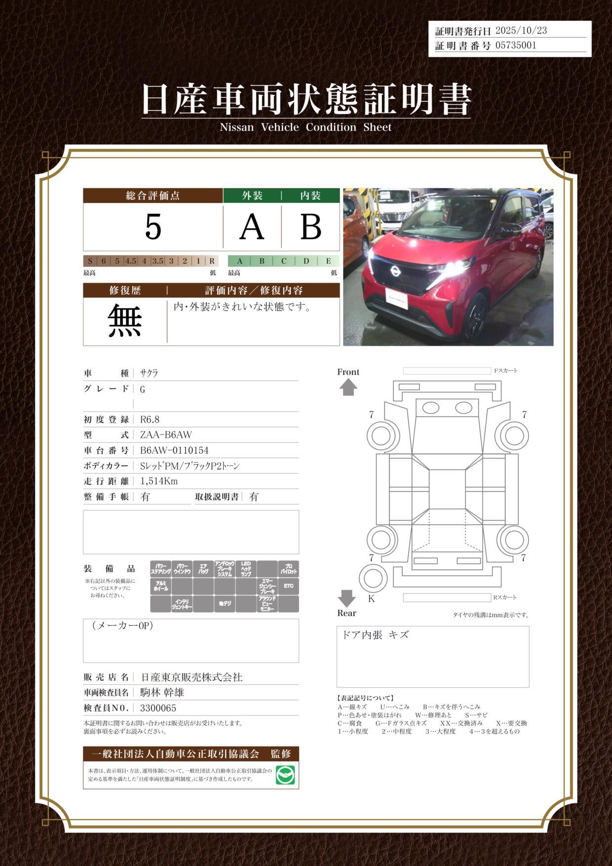 車両保証(サクラ G:日産東京販売(株) P’sステージ高島平)