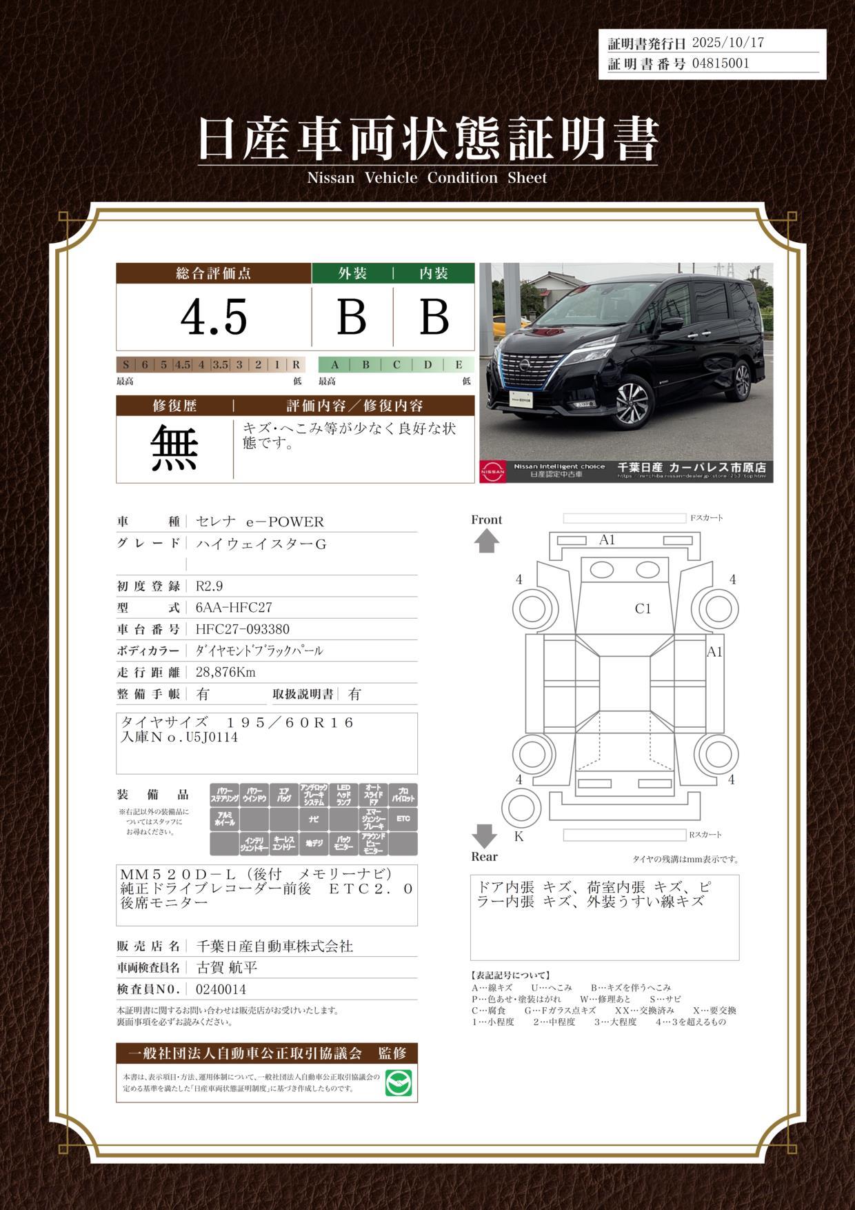 車両保証(セレナ e-パワー ハイウェイスターG:千葉日産自動車株式会社 カーパレス市原)