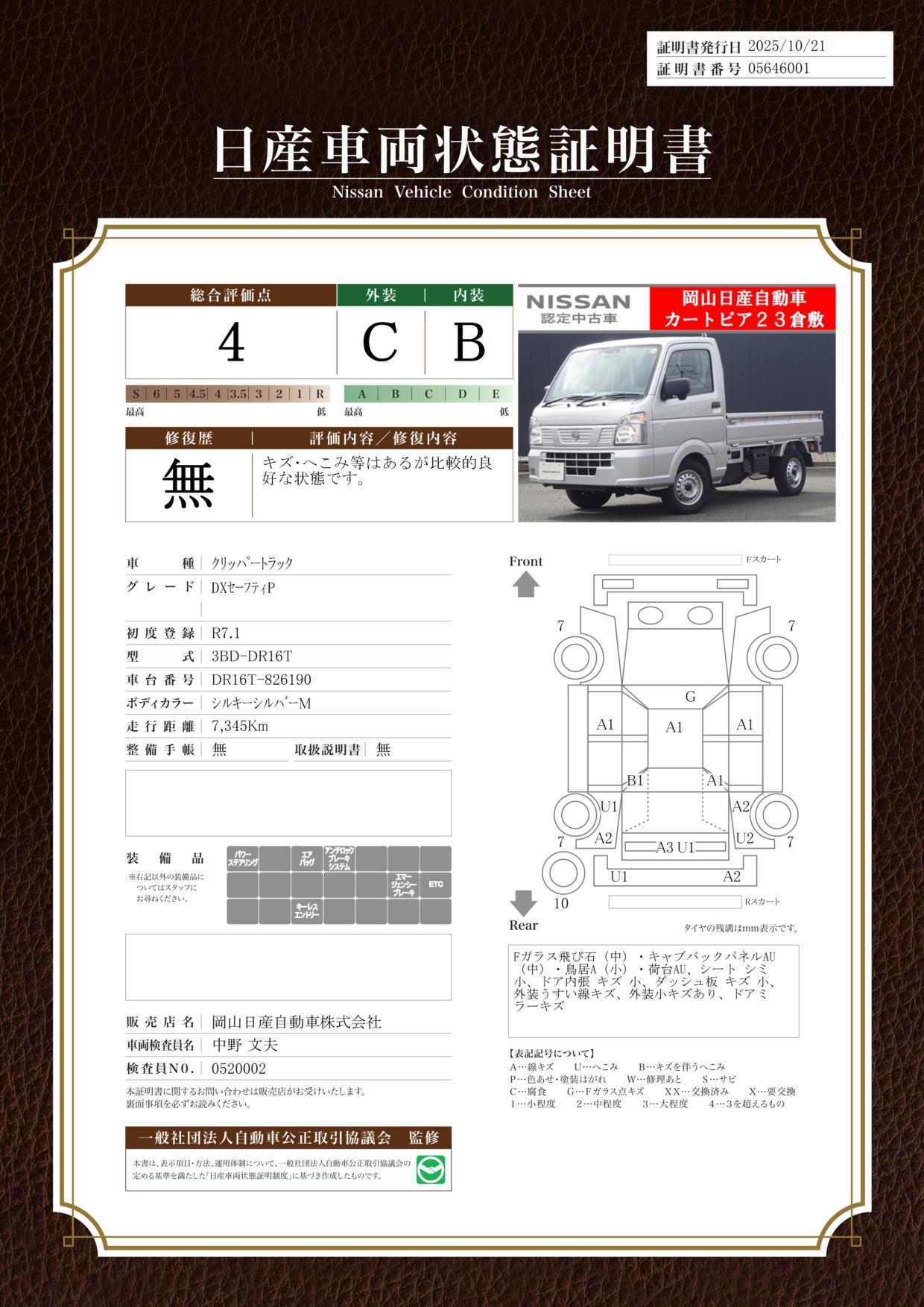 車両保証(クリッパートラック DX セーフティパッケージ:岡山日産自動車(株) カートピア23倉敷)
