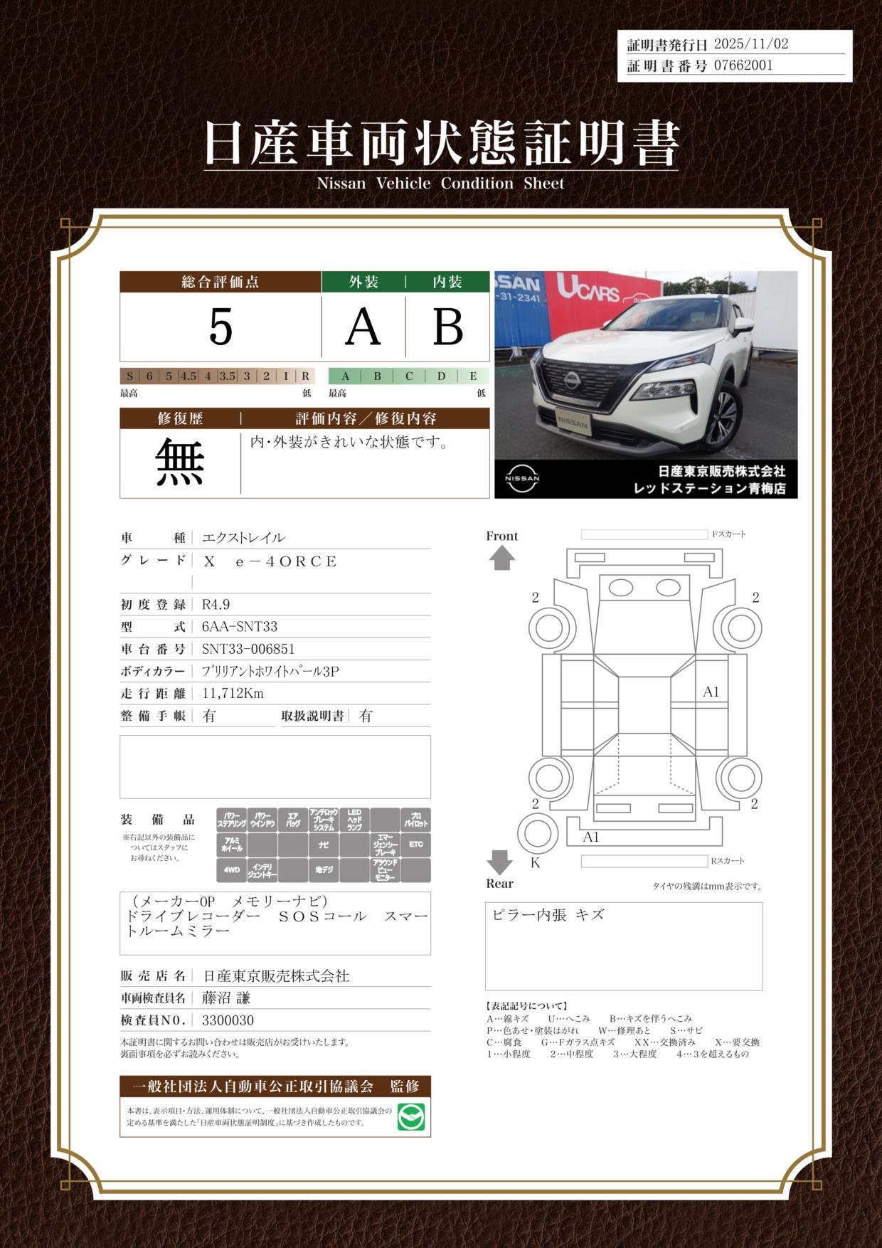 車両保証(エクストレイル X e-4ORCE:日産東京販売(株) レッドステーション青梅店)