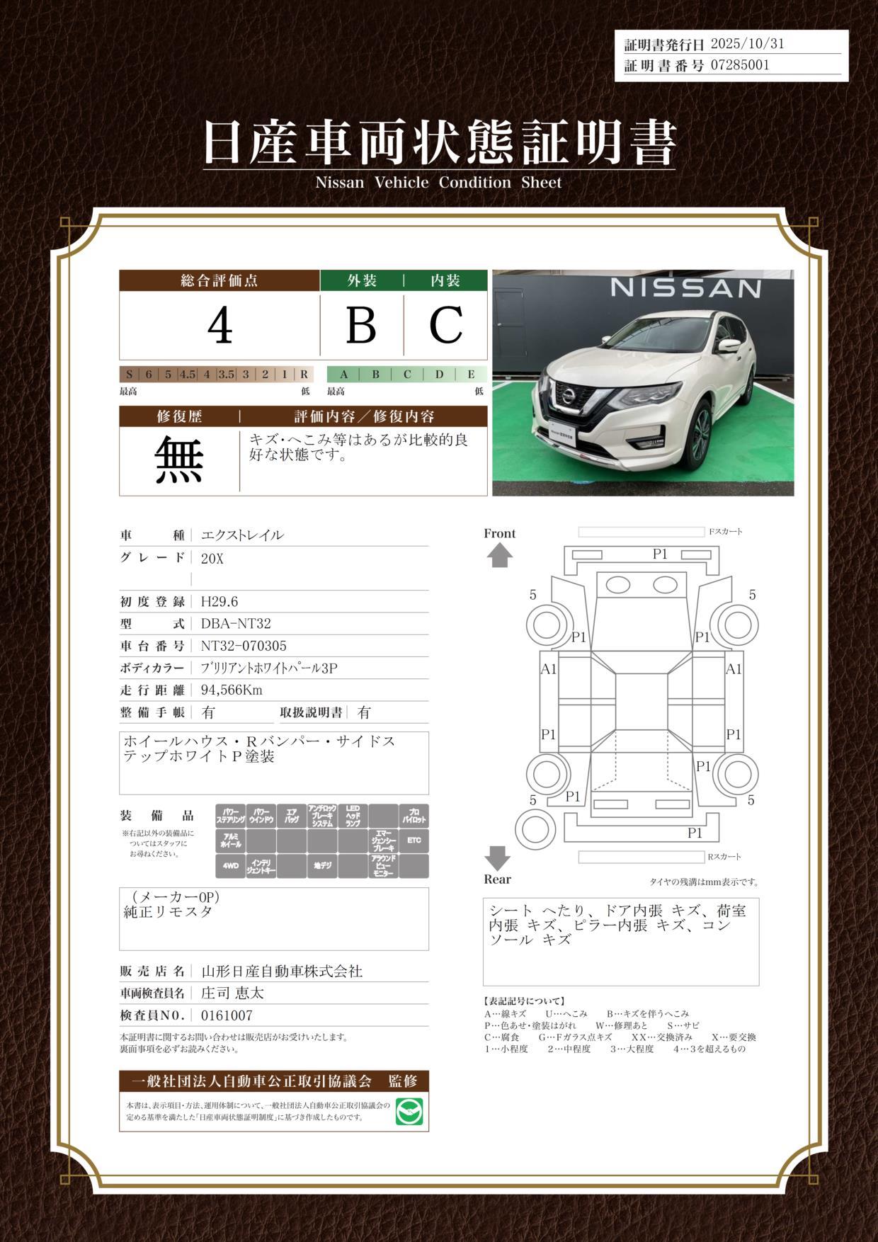 車両保証(エクストレイル 20X:日産プリンス山形販売株式会社 マイカーランド山形)