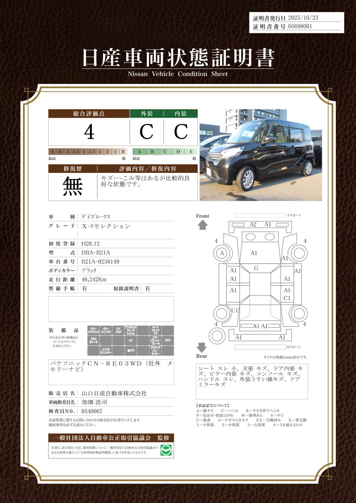 車両保証(デイズルークス X Vセレクション:山口日産自動車(株)ステージ23下関店)