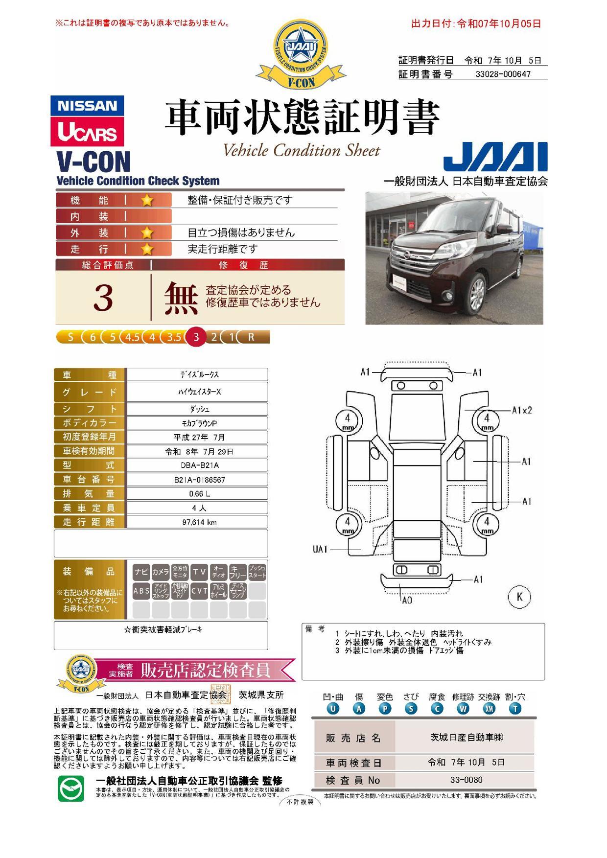 車両保証(デイズルークス ハイウェイスター X:茨城日産自動車(株)U-Cars古河店)