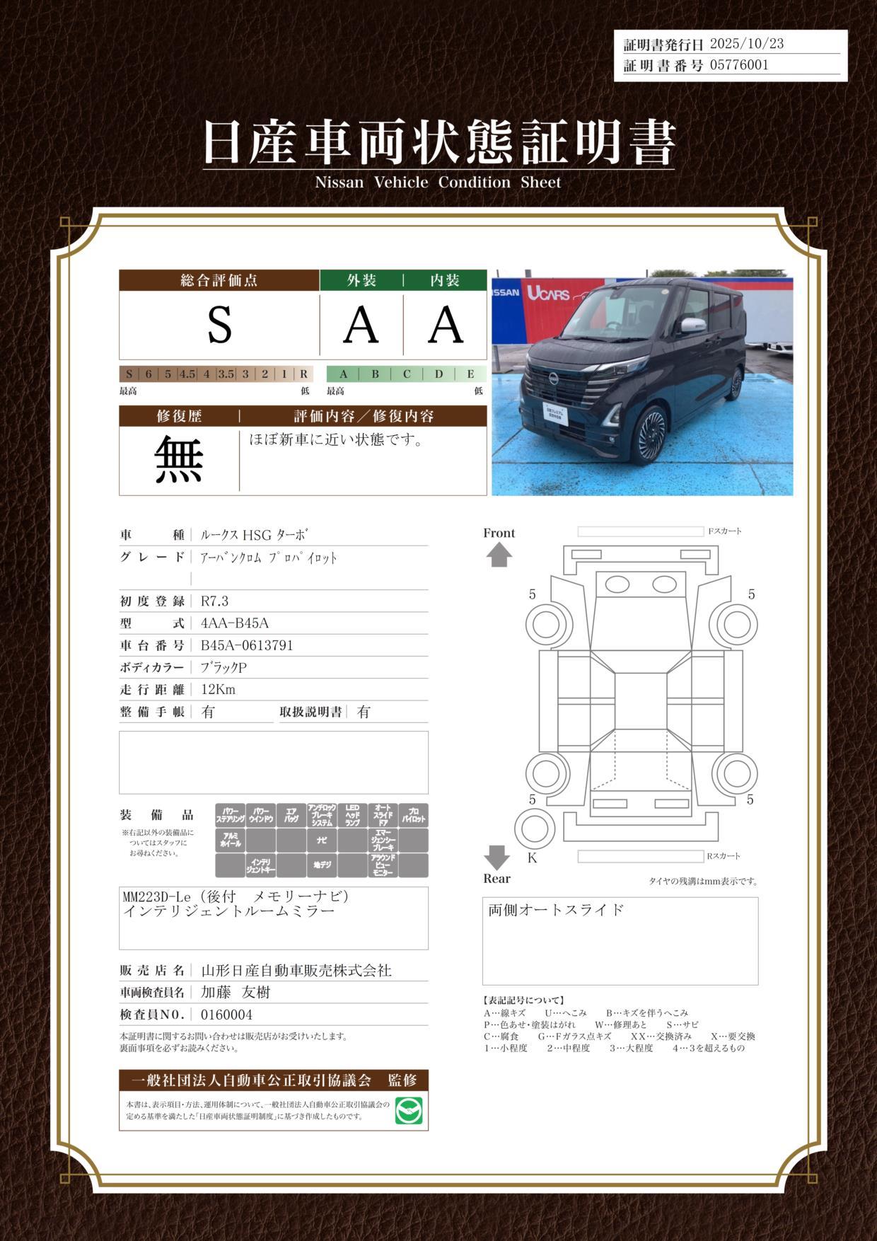 車両保証(ルークス ハイウェイスター Gターボ アーバンクロム:山形日産自動車販売(株) カーパレス亀ヶ崎)