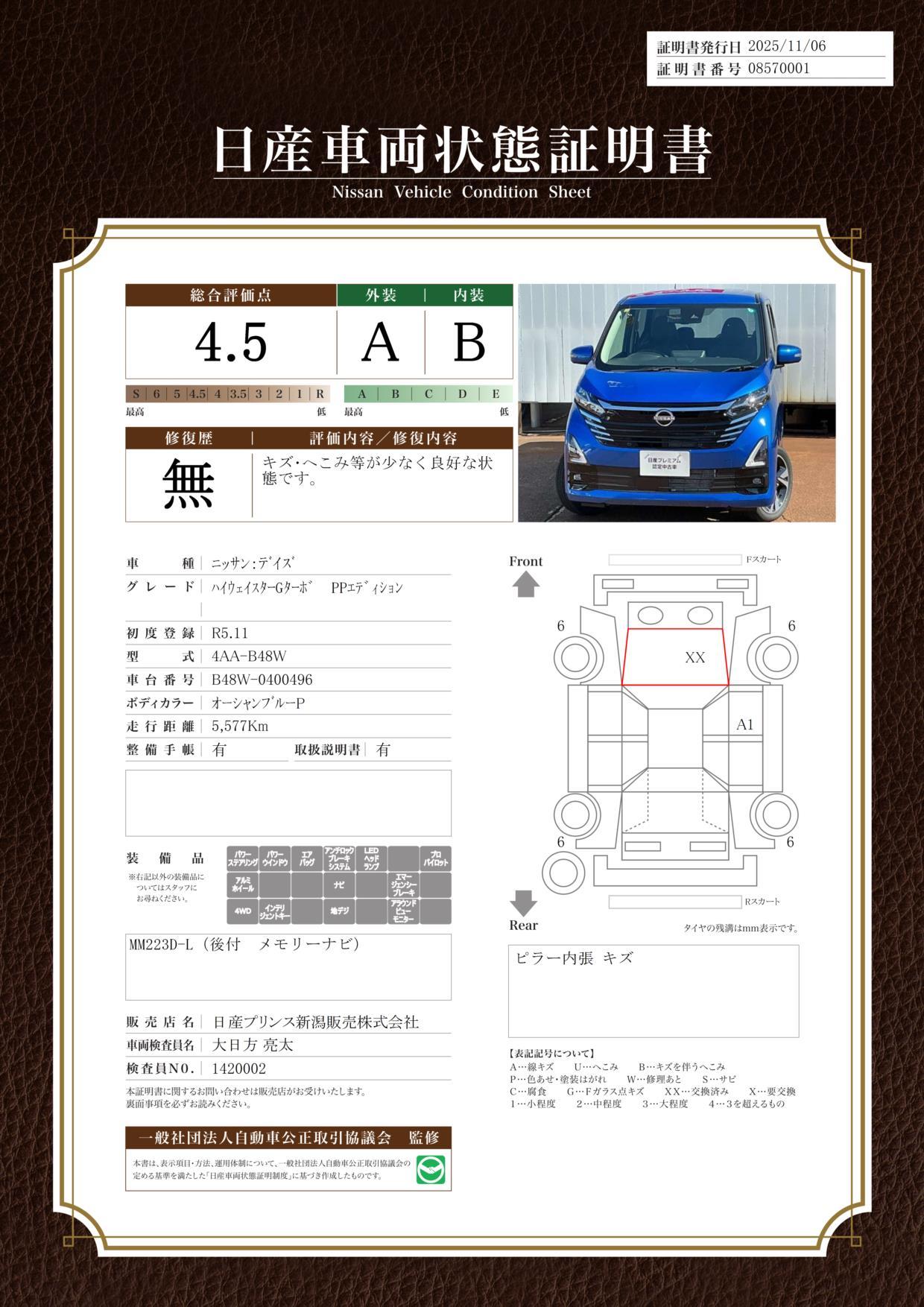 車両保証(デイズ ハイウェイスター Gターボプロパイロットエディション:日産プリンス新潟販売(株) マイカー上越店)
