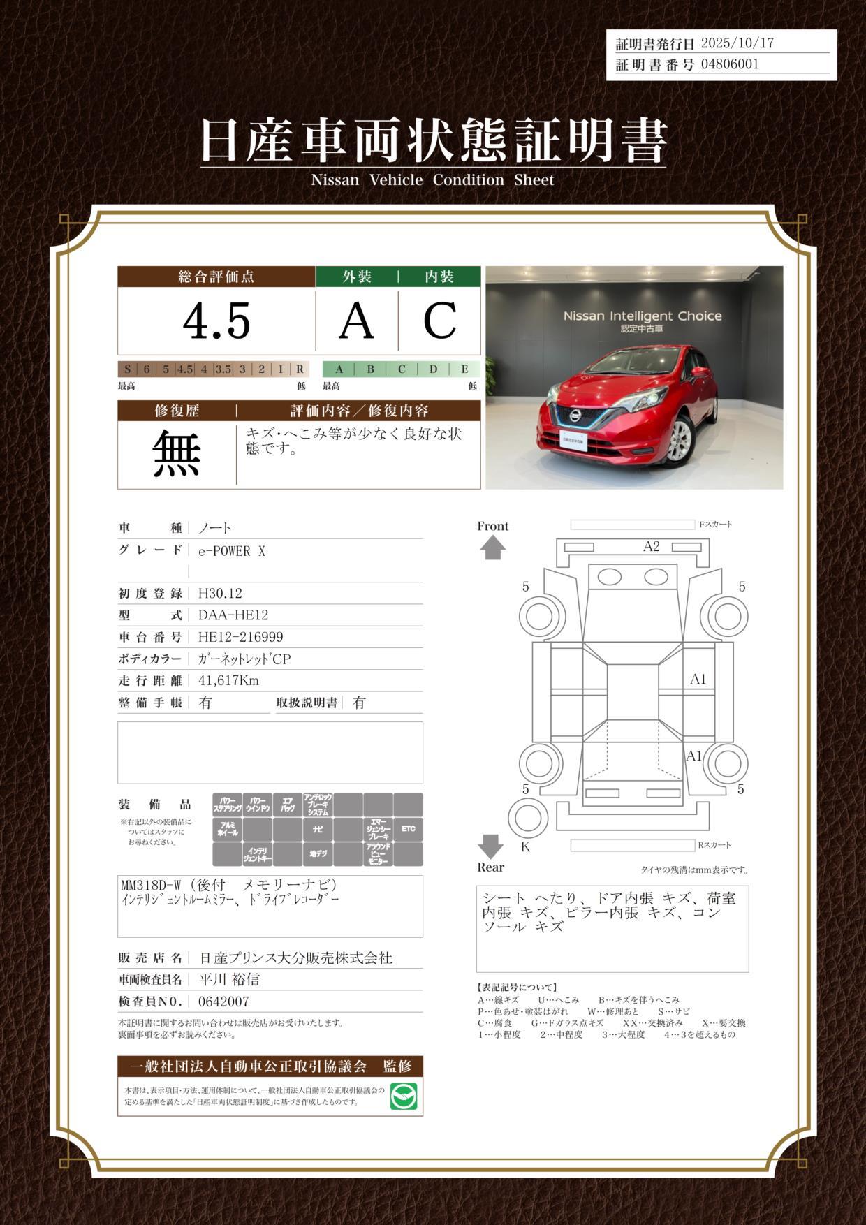 車両保証(ノート e-パワー X:日産プリンス大分販売(株)大分本店)
