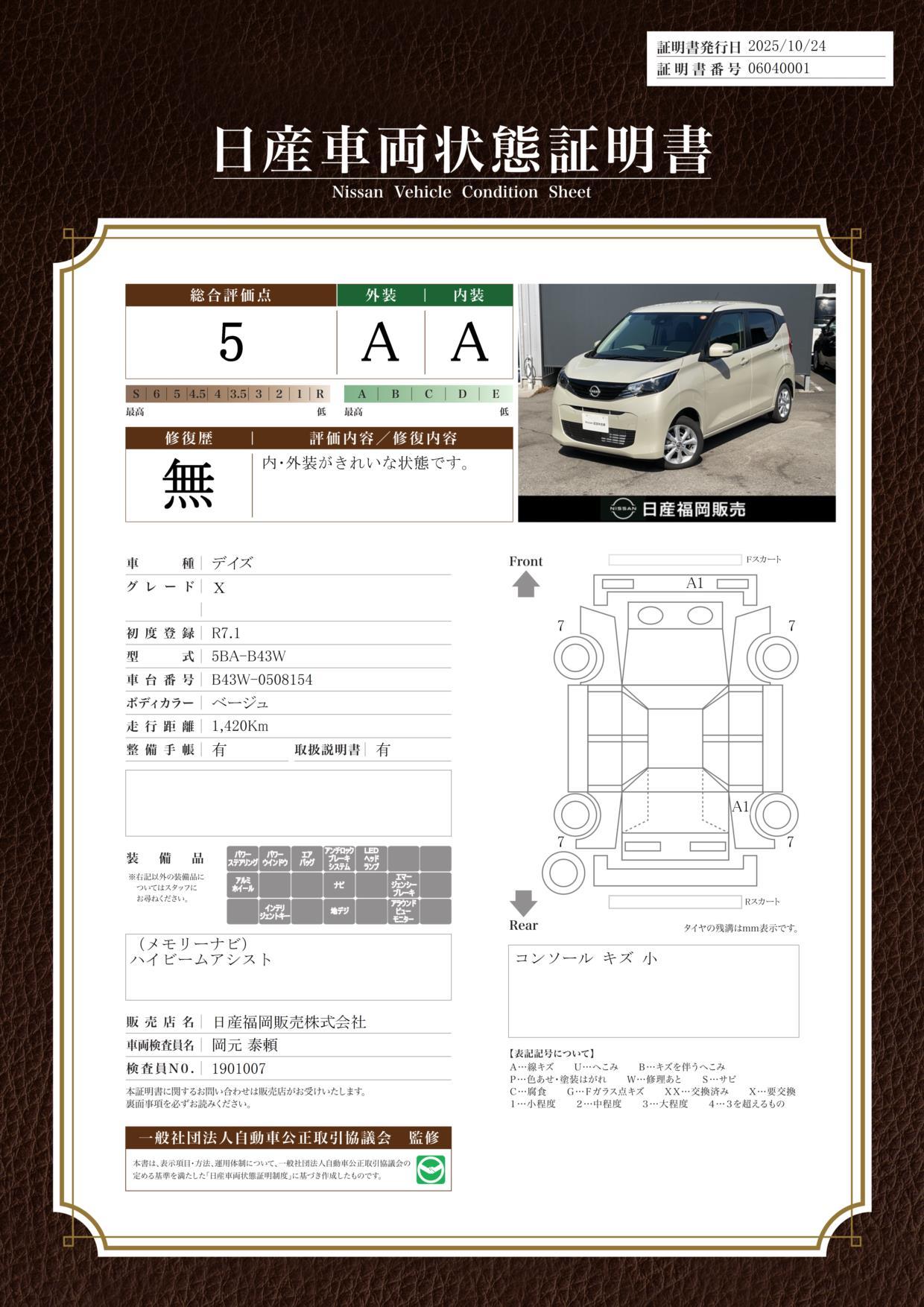 車両保証(デイズ X:日産福岡販売(株) カーパレス筑豊)