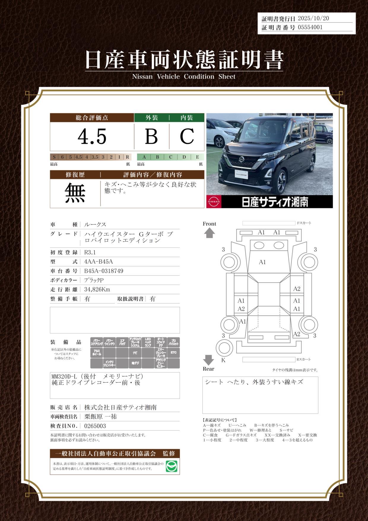 車両保証(ルークス ハイウェイスター Gターボプロパイロットエディション:(株)日産サティオ湘南 ユーカーマーケット小田原)