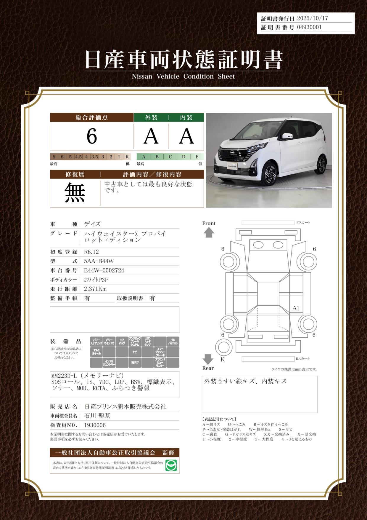 車両保証(デイズ ハイウェイスター X プロパイロットエディション:日産プリンス熊本販売(株) カーランド御領店)