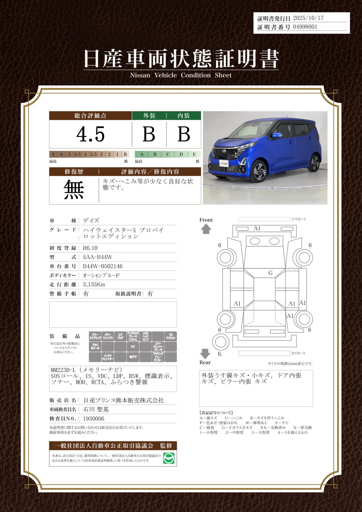 車両保証(デイズ ハイウェイスター X プロパイロットエディション:日産プリンス熊本販売(株) カーランド御領店)