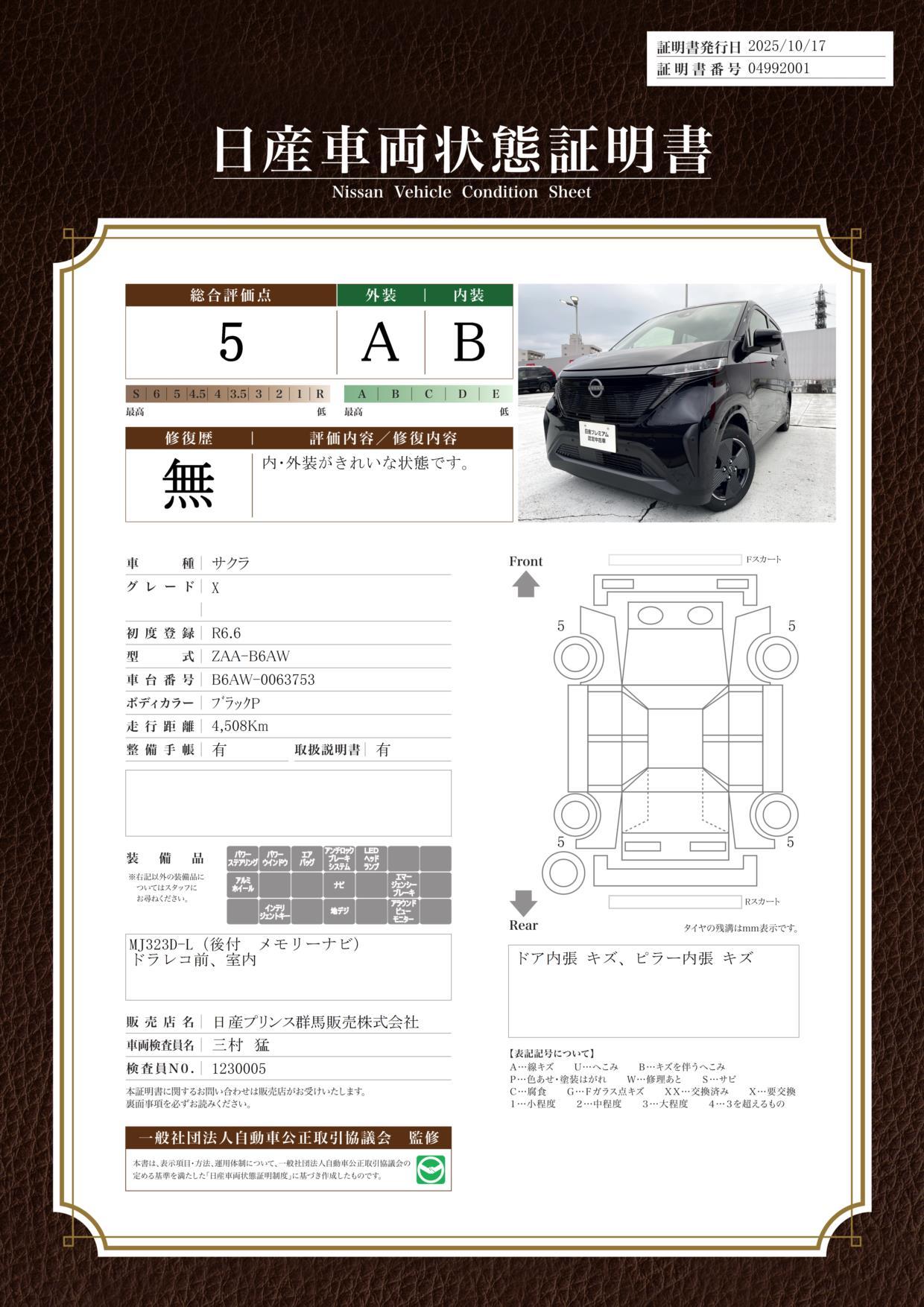 車両保証(サクラ X:日産プリンス群馬販売(株) カーステージ高崎)