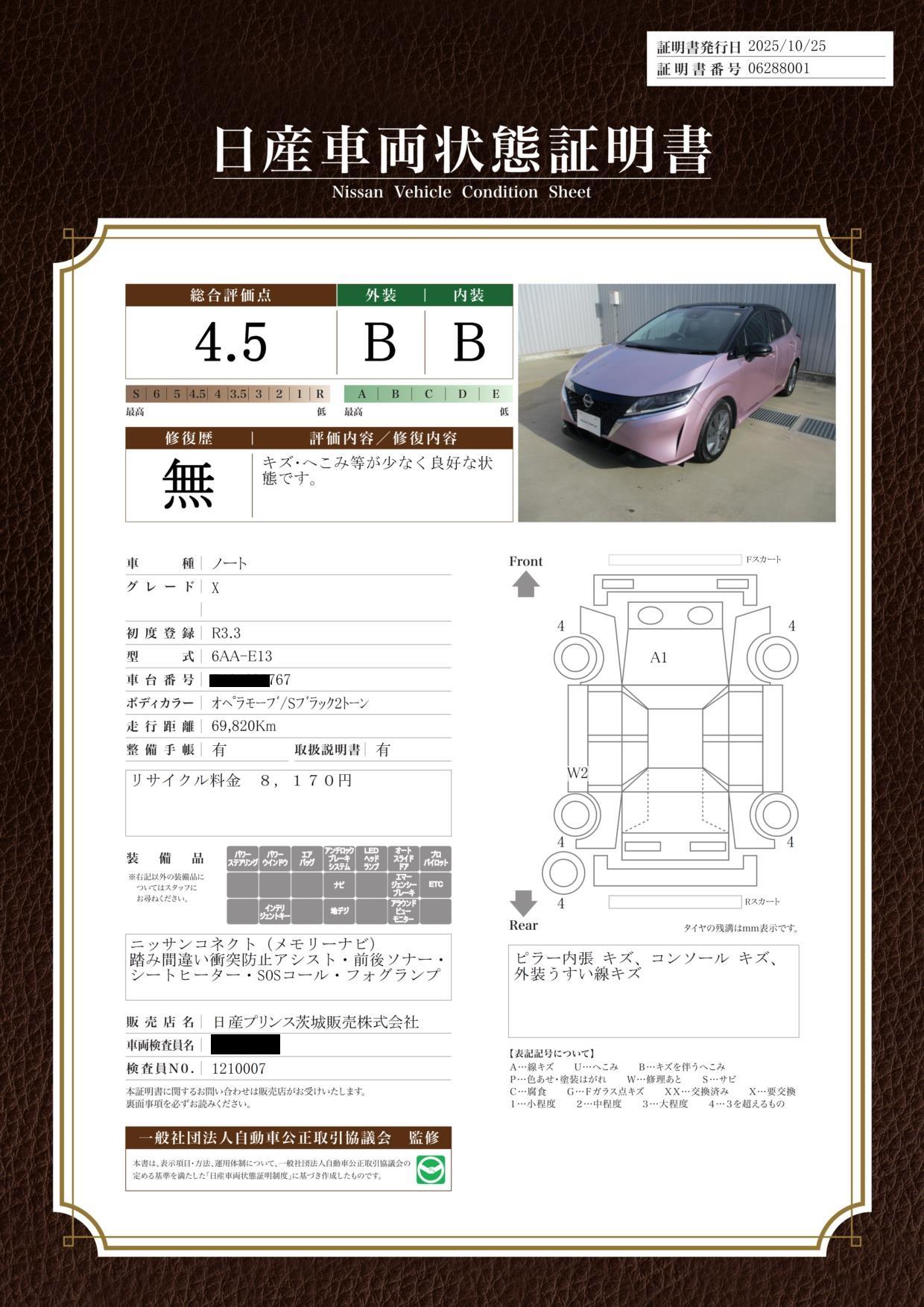 車両保証(ノート X:茨城日産自動車(株)U-Carsつくばさくらの森店)