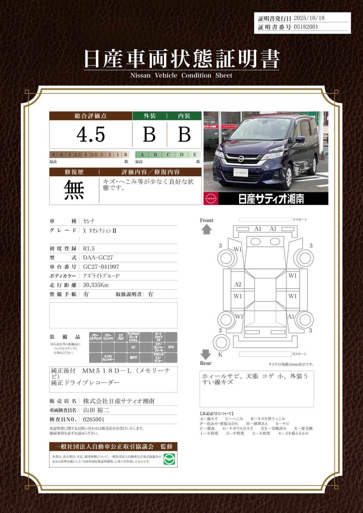 車両保証(セレナ X VセレクションII:(株)日産サティオ湘南 ユーカーマーケット平塚)