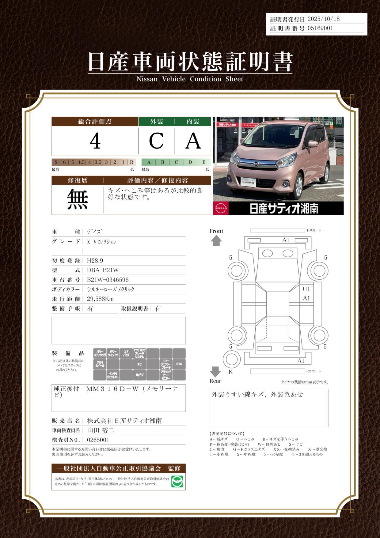 車両状態評価書 | ※クリックすると開きます![]() |
