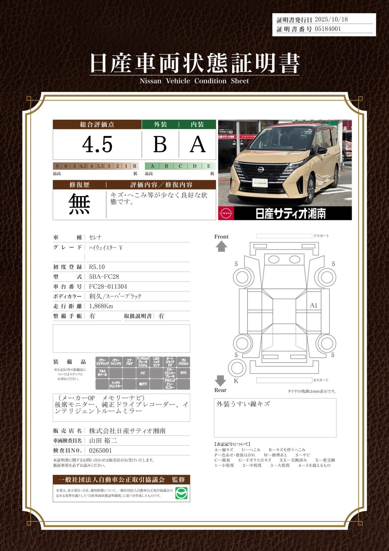 車両状態評価書 | ※クリックすると開きます![]() |