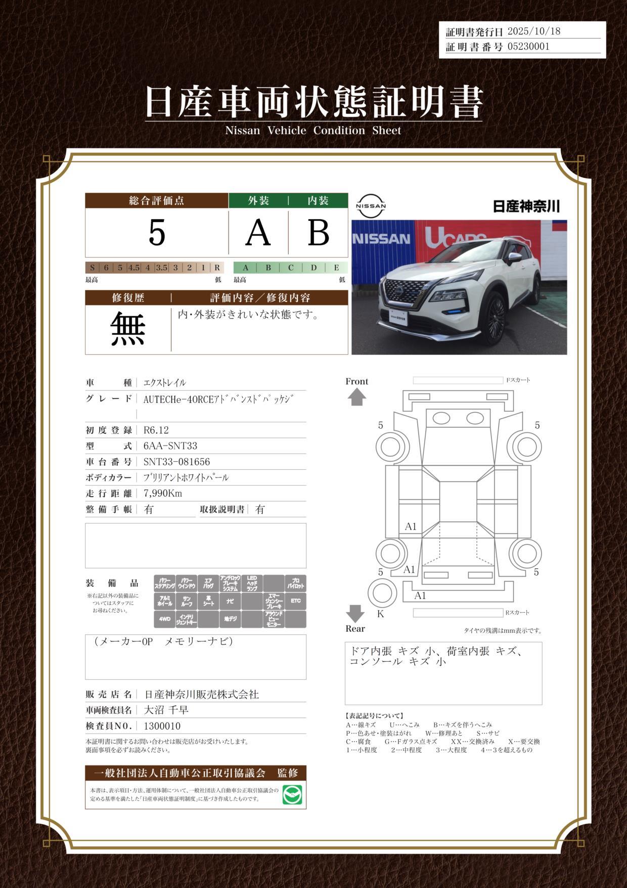 車両状態評価書 | ※クリックすると開きます![]() |