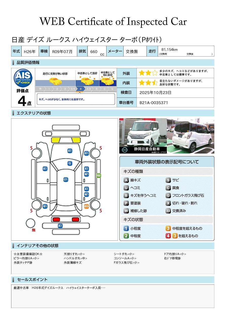 車両保証(デイズルークス ハイウェイスター ターボ:静岡日産自動車 SBS通りカープラザ)