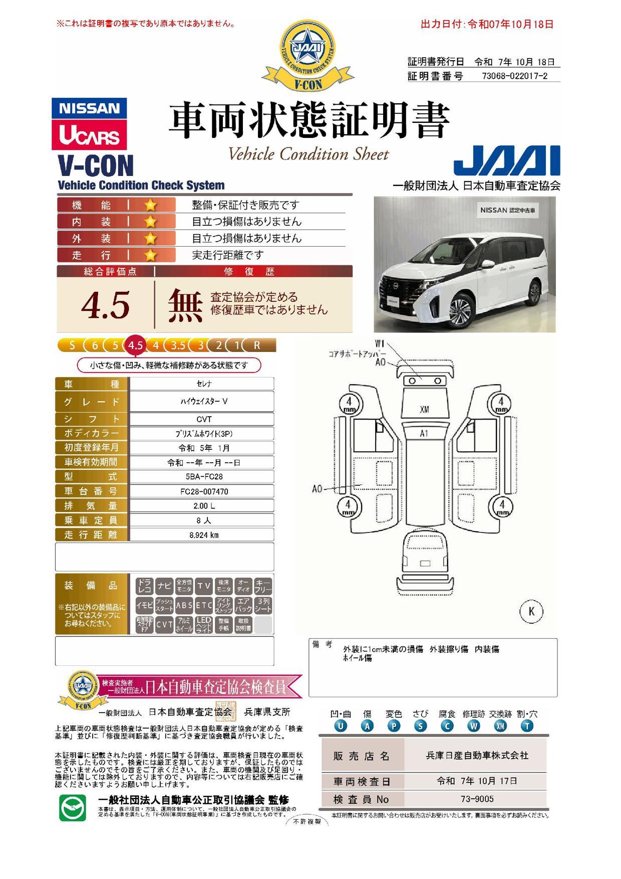 車両保証(セレナ ハイウェイスターV:兵庫日産自動車株式会社 カーパレス姫路)
