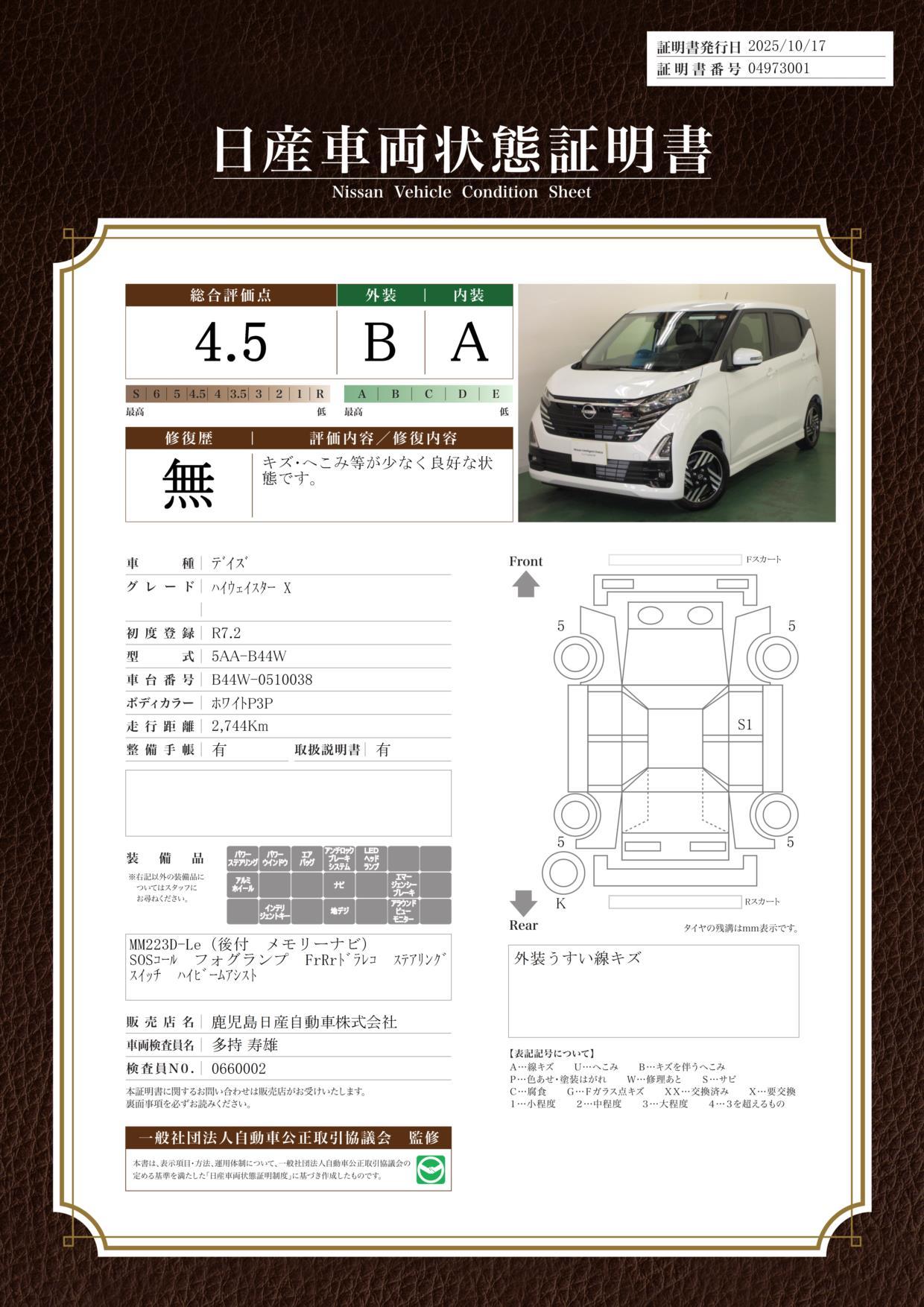 車両保証(デイズ ハイウェイスター X:鹿児島日産自動車株式会社 カーパレス宇宿)