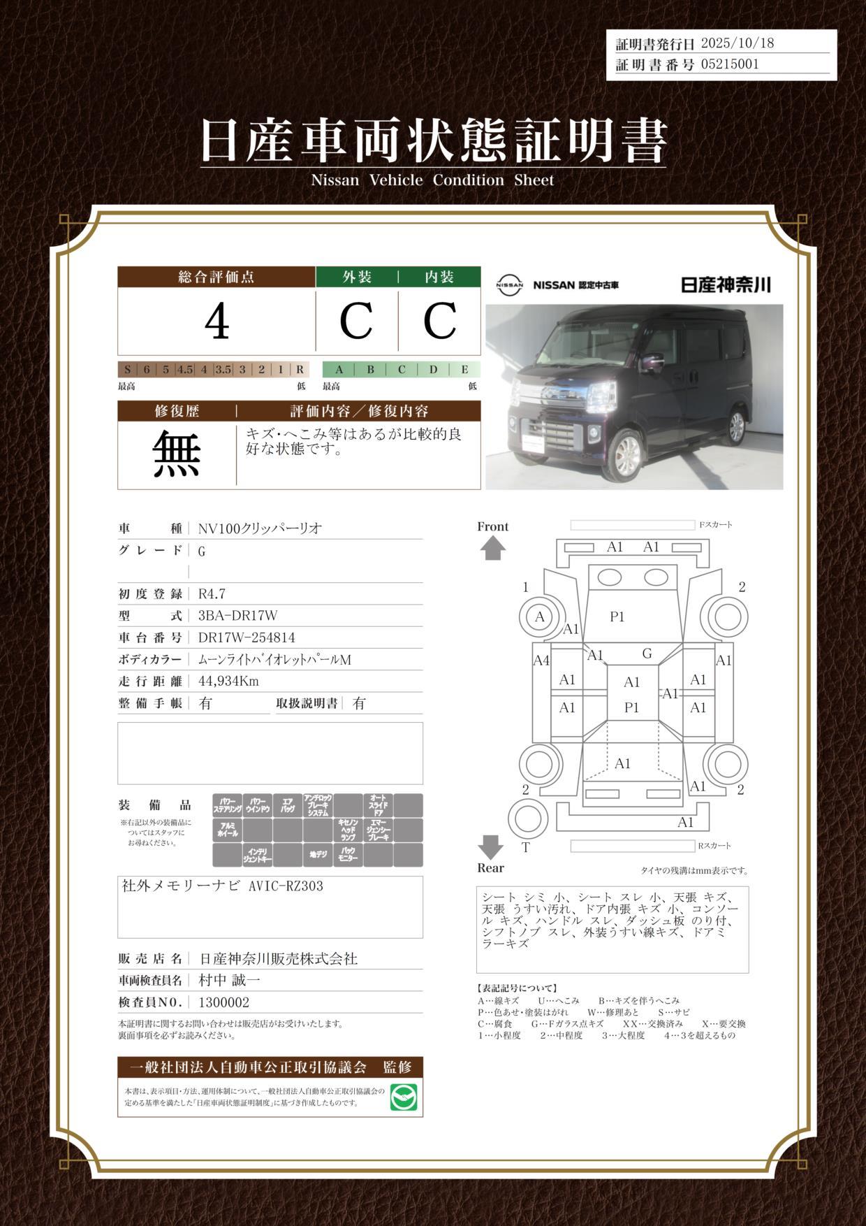 車両保証(NV100クリッパーリオ G:日産神奈川販売株式会社 Carスクエア東名横浜)